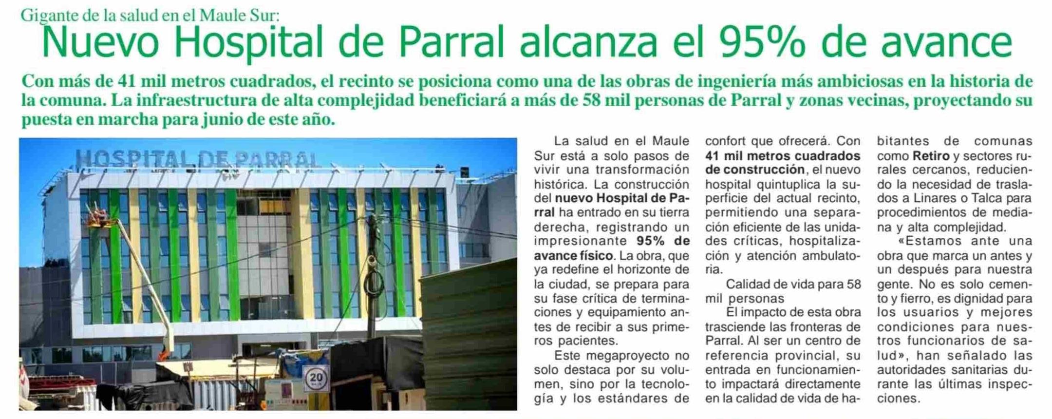 Título: Nuevo Hospital de Parral alcanza el 95% de avance