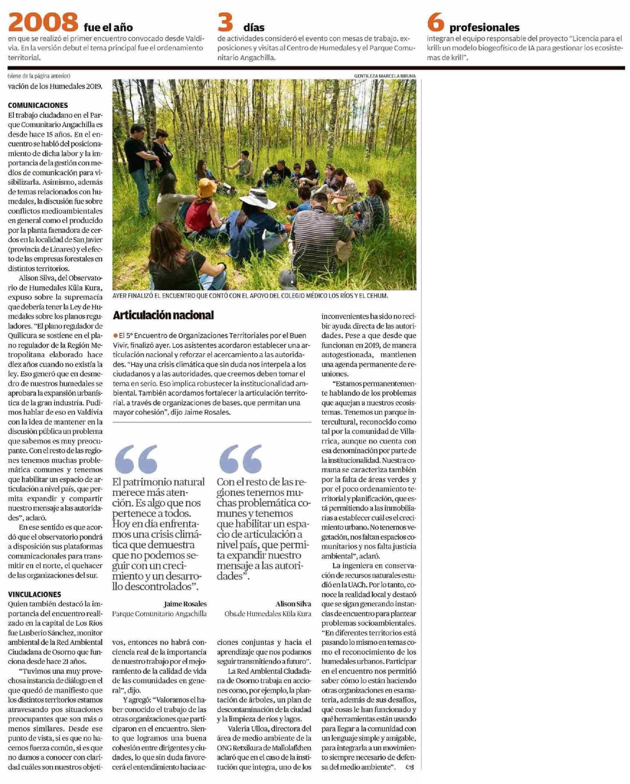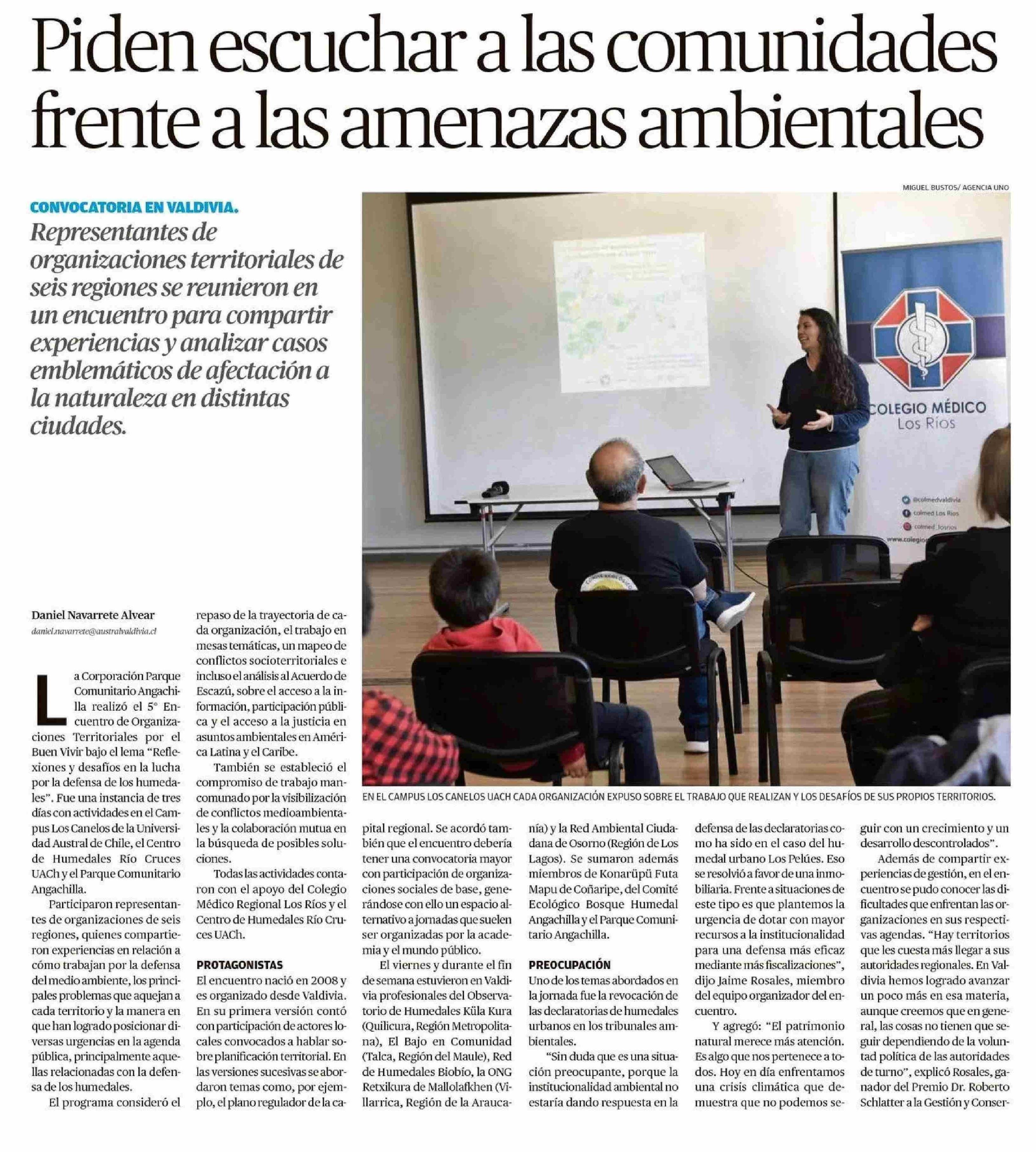 Piden escuchar a las comunidades frente a las amenazas ambientales 27-11-2023 Diario Austral Región de Los Ríos |