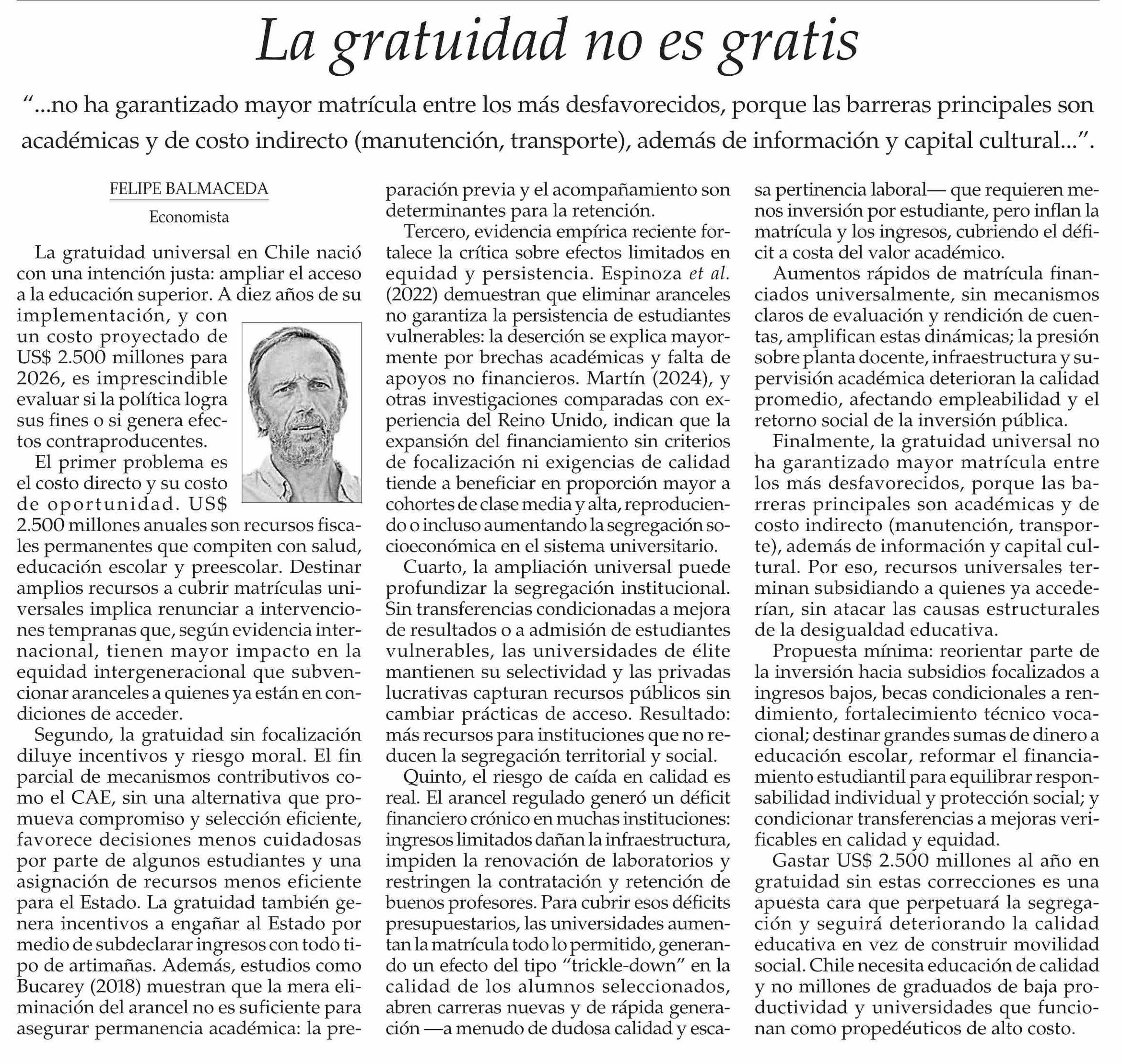Título: La gratuidad no es gratis