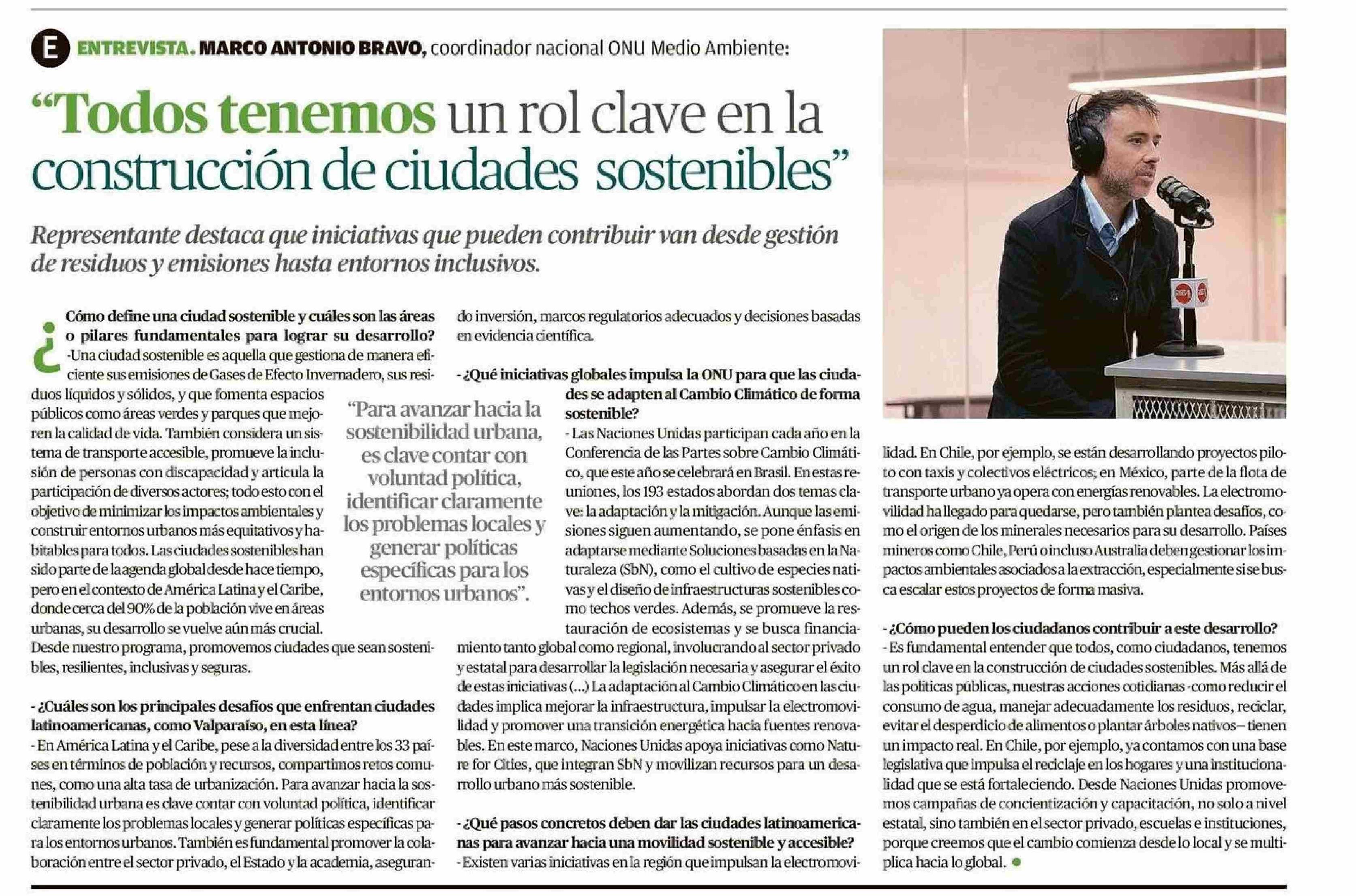 “Todos tenemos un rol clave en la construcción de ciudades sostenibles” 18-05-2025 El Mercurio de Valparaíso |
