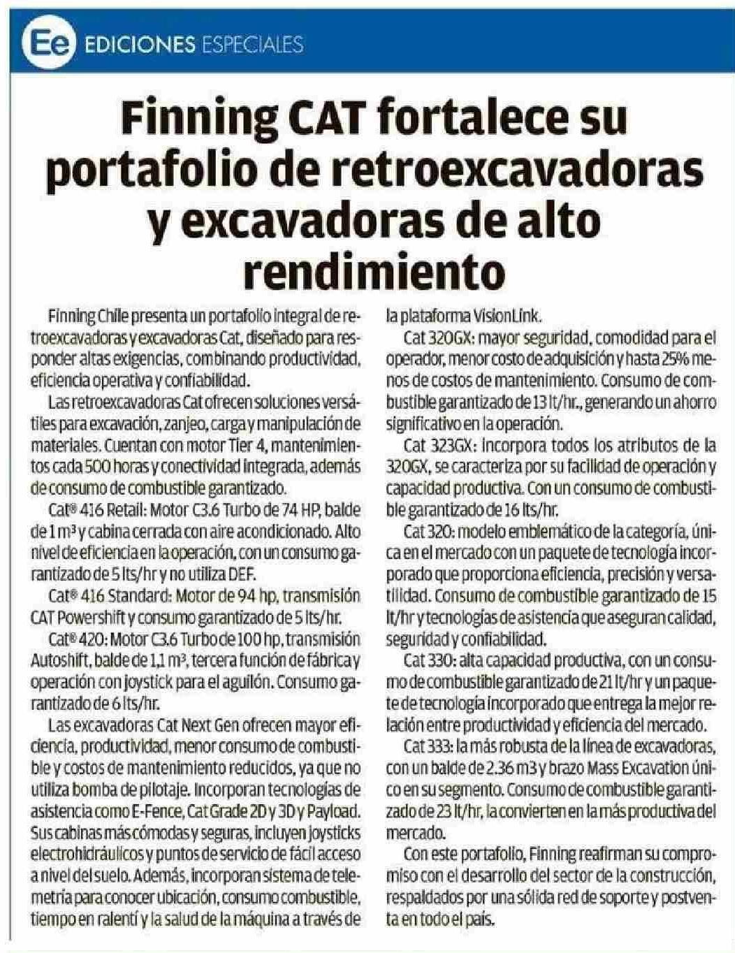 Finning CAT fortalece su portafolio de retroexcavadoras y excavadoras de alto rendimiento 18-01-2026 El Mercurio de Valparaíso |