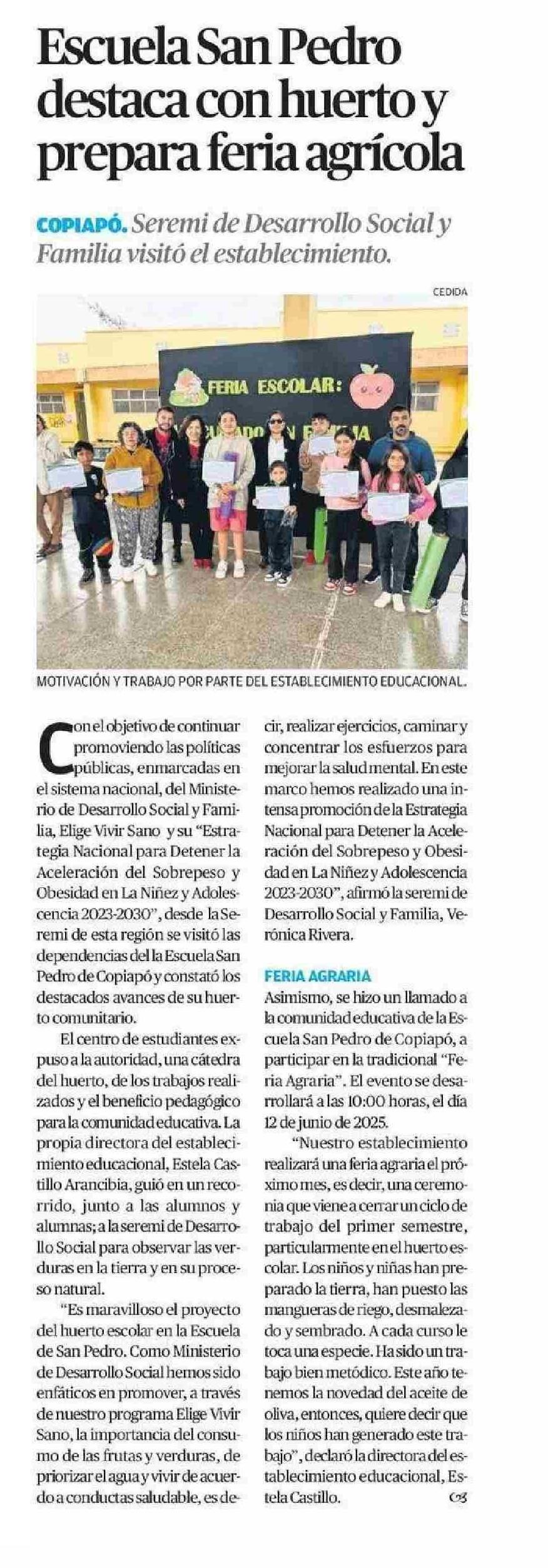Escuela San Pedro destaca con huerto y prepara feria agrícola 01-06-2025 El Diario de Atacama |