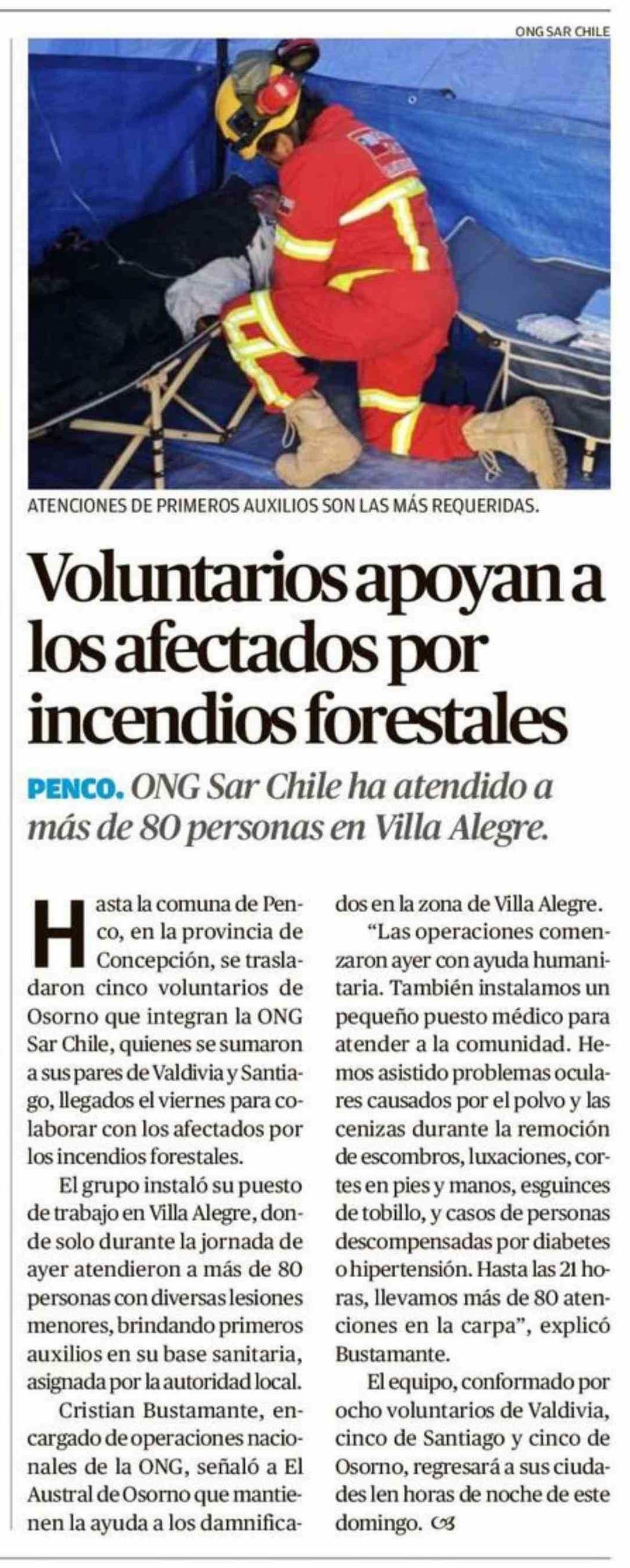 Título: Voluntarios apoyan a los afectados por incendios forestales