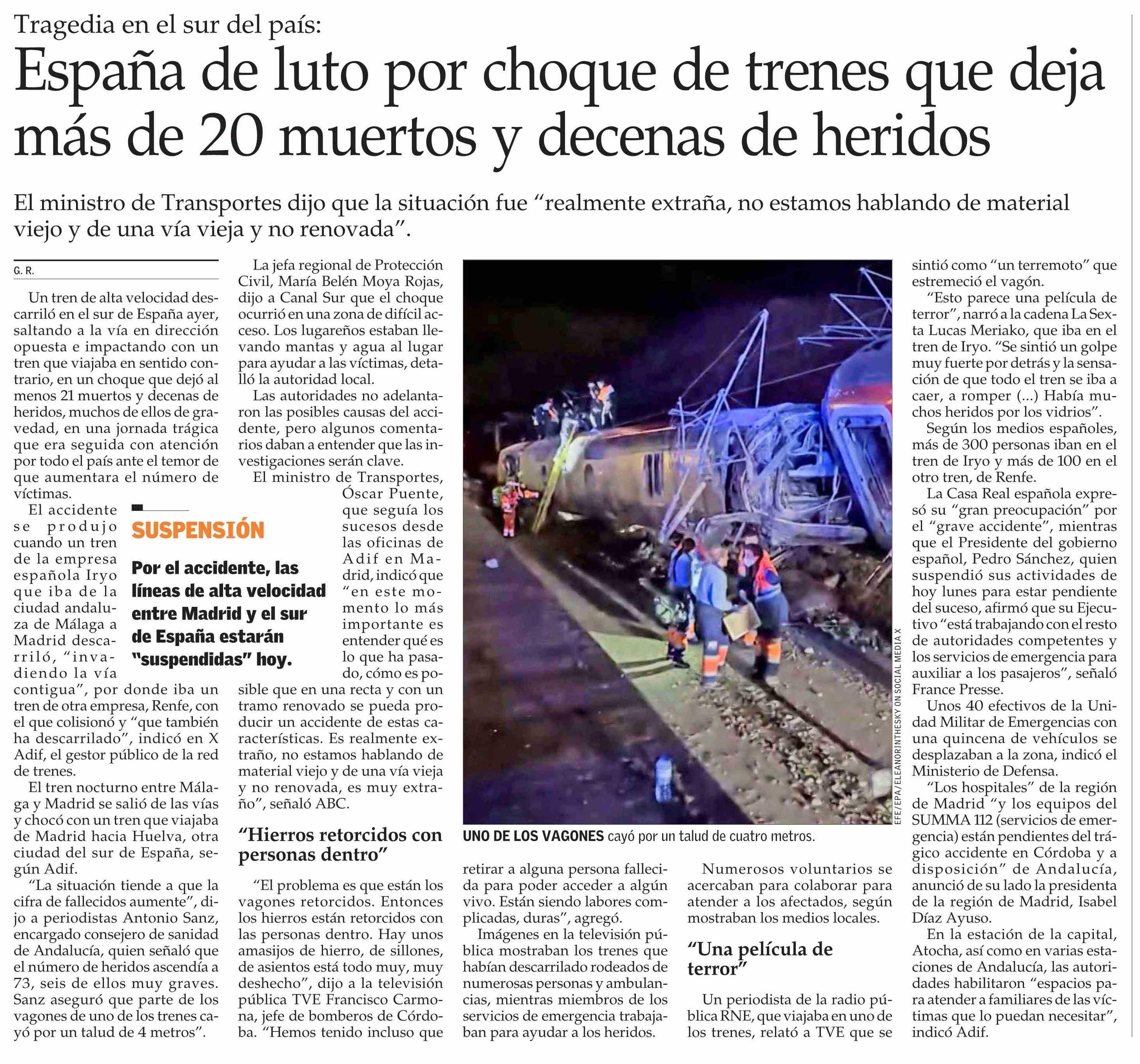 Título: España de luto por choque de trenes que deja más de 20 muertos y decenas de heridos