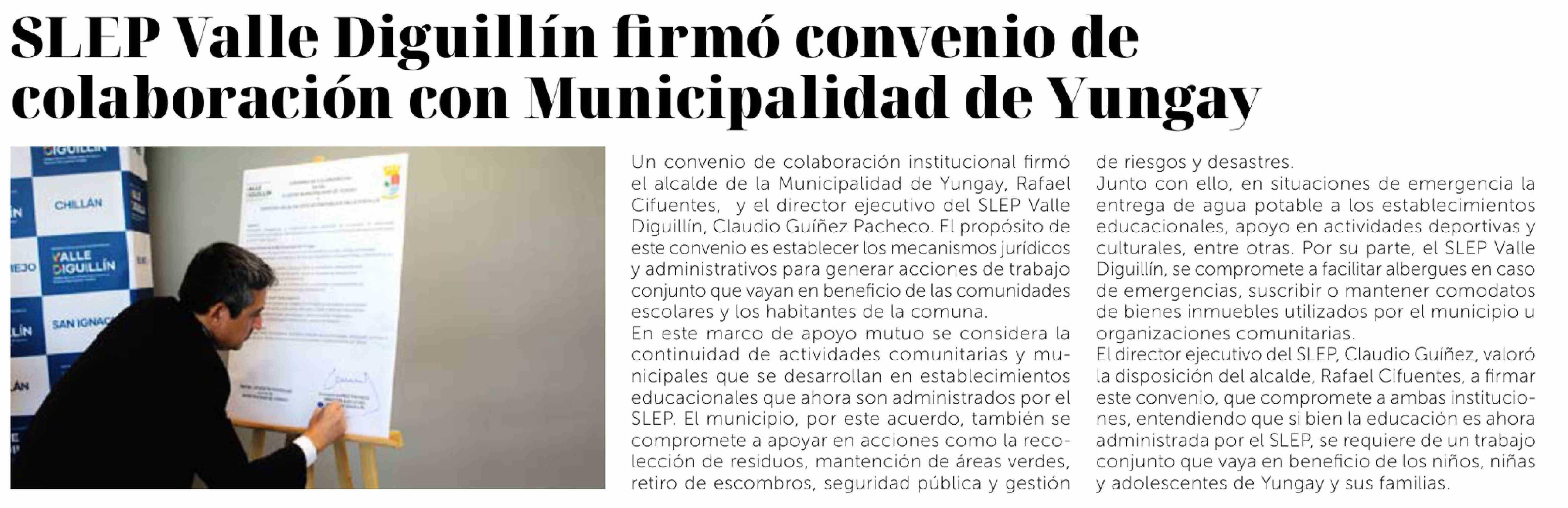 | Título: | SLEP Valle Diguillín firmó convenio de colaboración con Municipalidad de Yungay |
