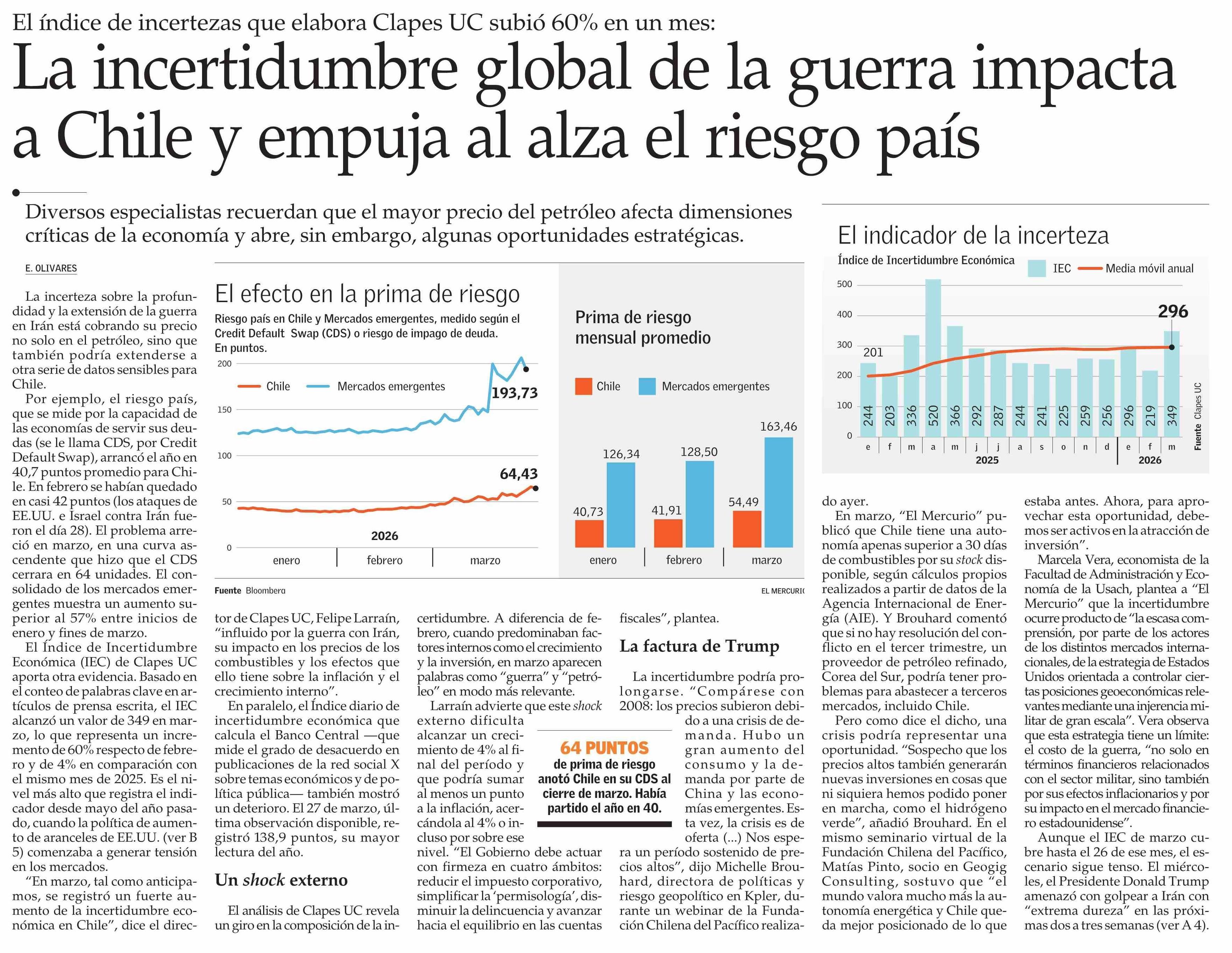 Título: La incertidumbre global de la guerra impacta a Chile y empuja al alza el riesgo país