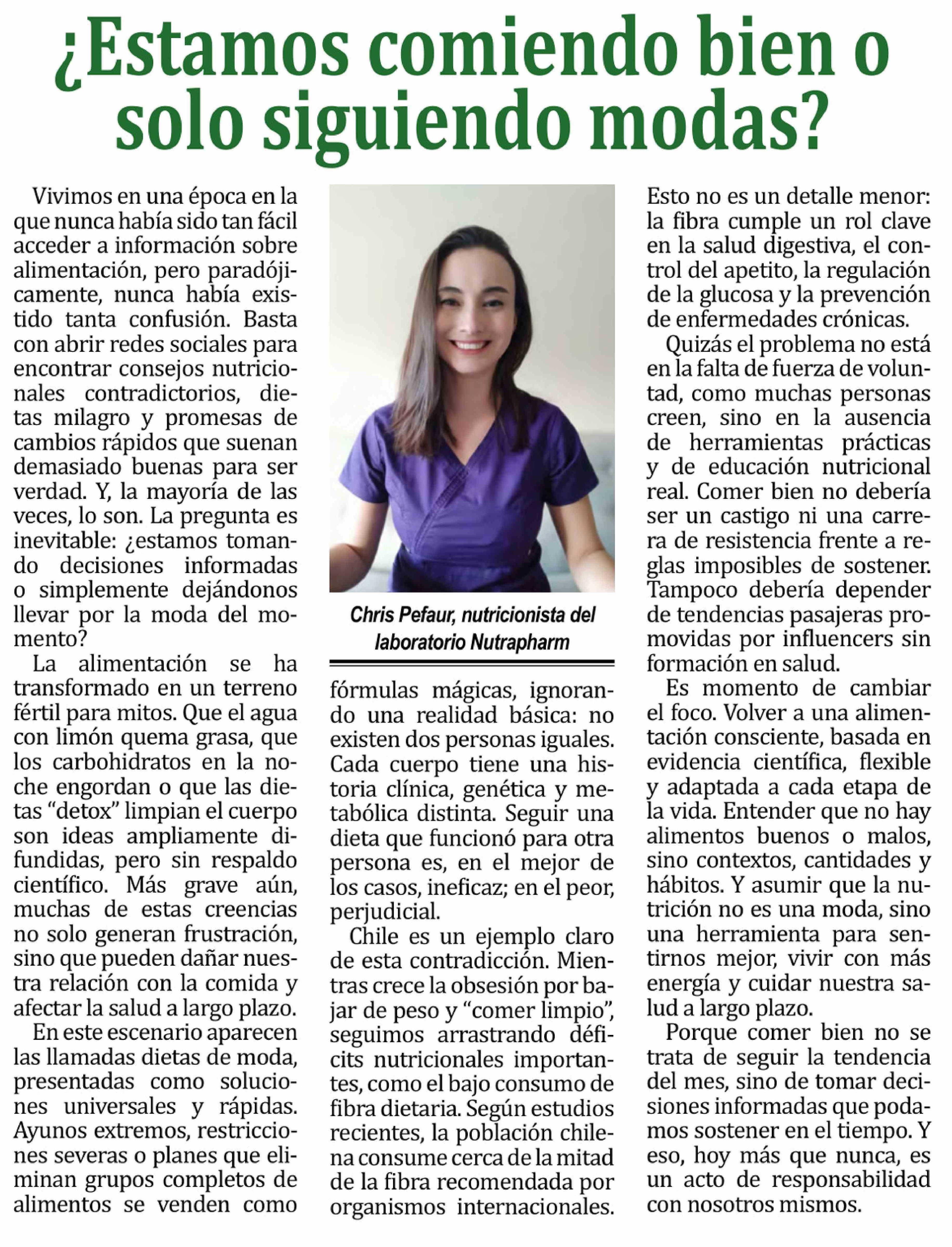 | Título: | Columnas de Opinión: ¿Estamos comiendo bien o solo siguiendo modas? |