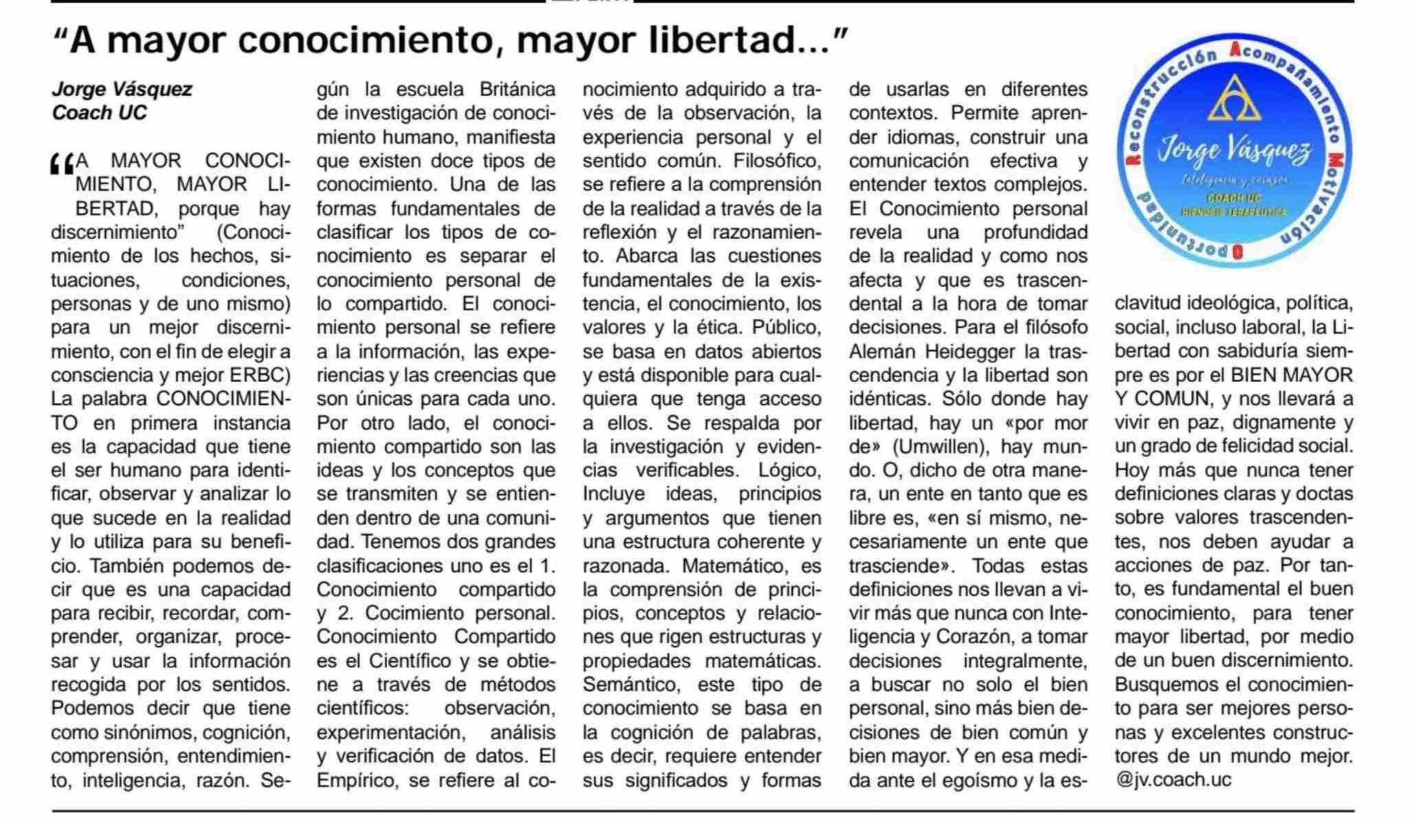 "A mayor conocimiento, mayor libertad...” 01-04-2025 Diario El Cóndor |