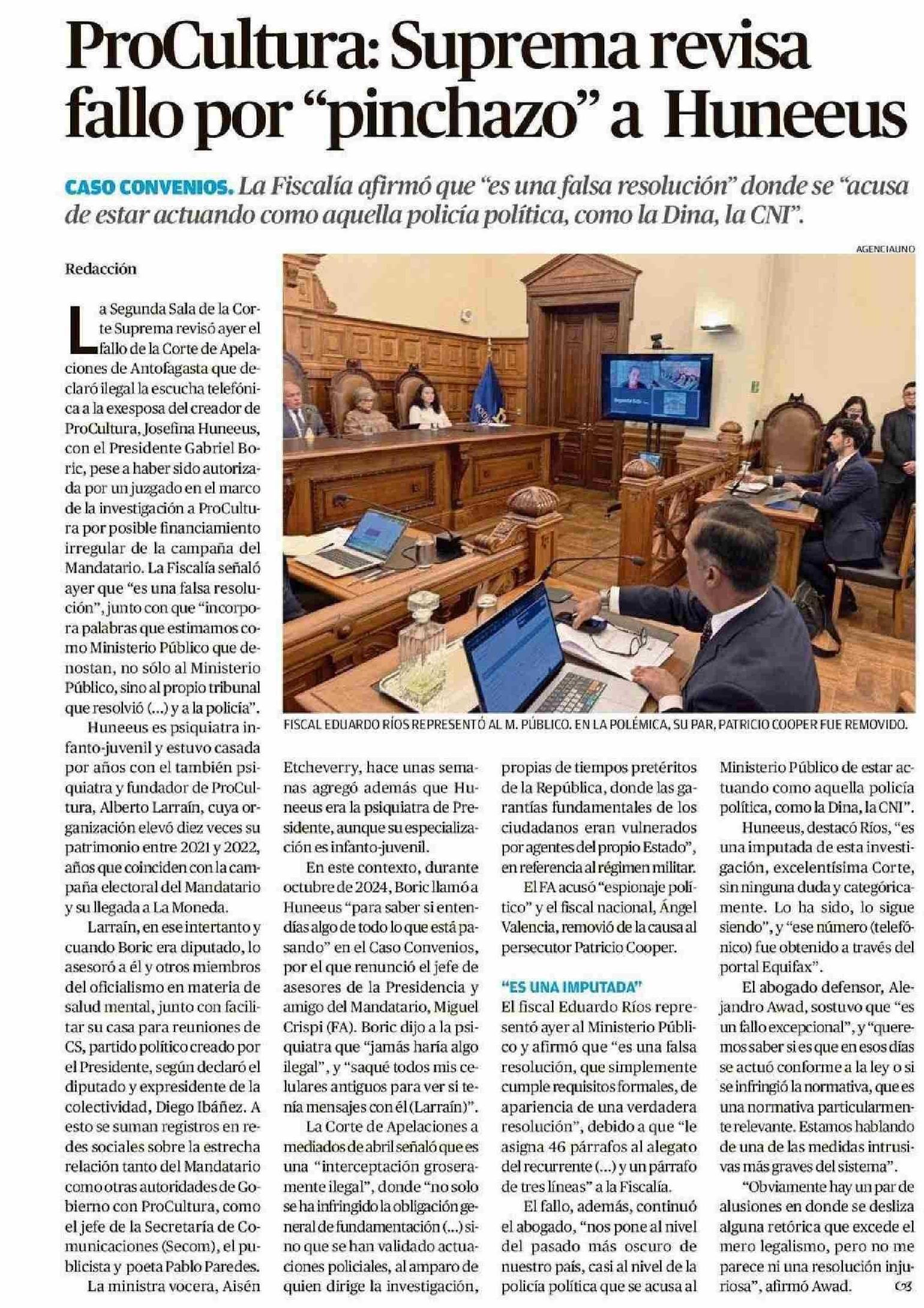 ProCultura: Suprema revisa fallo por “pinchazo” a Huneeus 03-06-2025 El Austral de Osorno |
