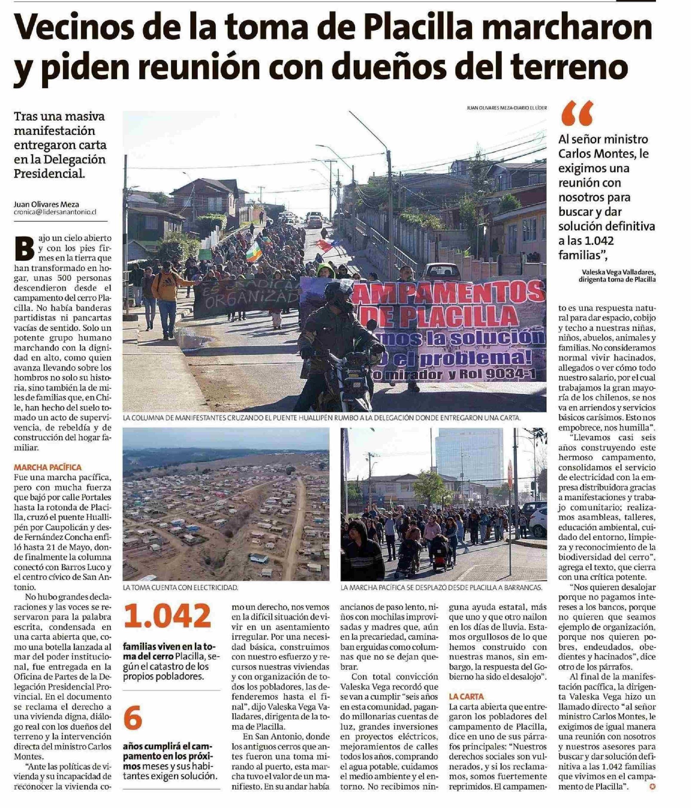 | Título: | Vecinos de la toma de Placilla marcharon y piden reunión con dueños del terreno |