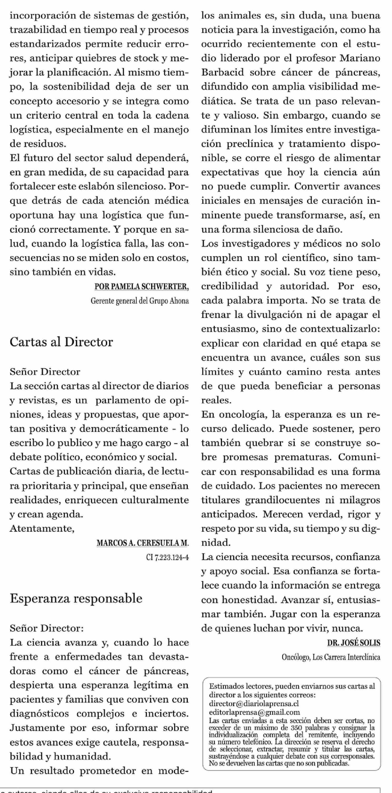 Cartas: Esperanza responsable
