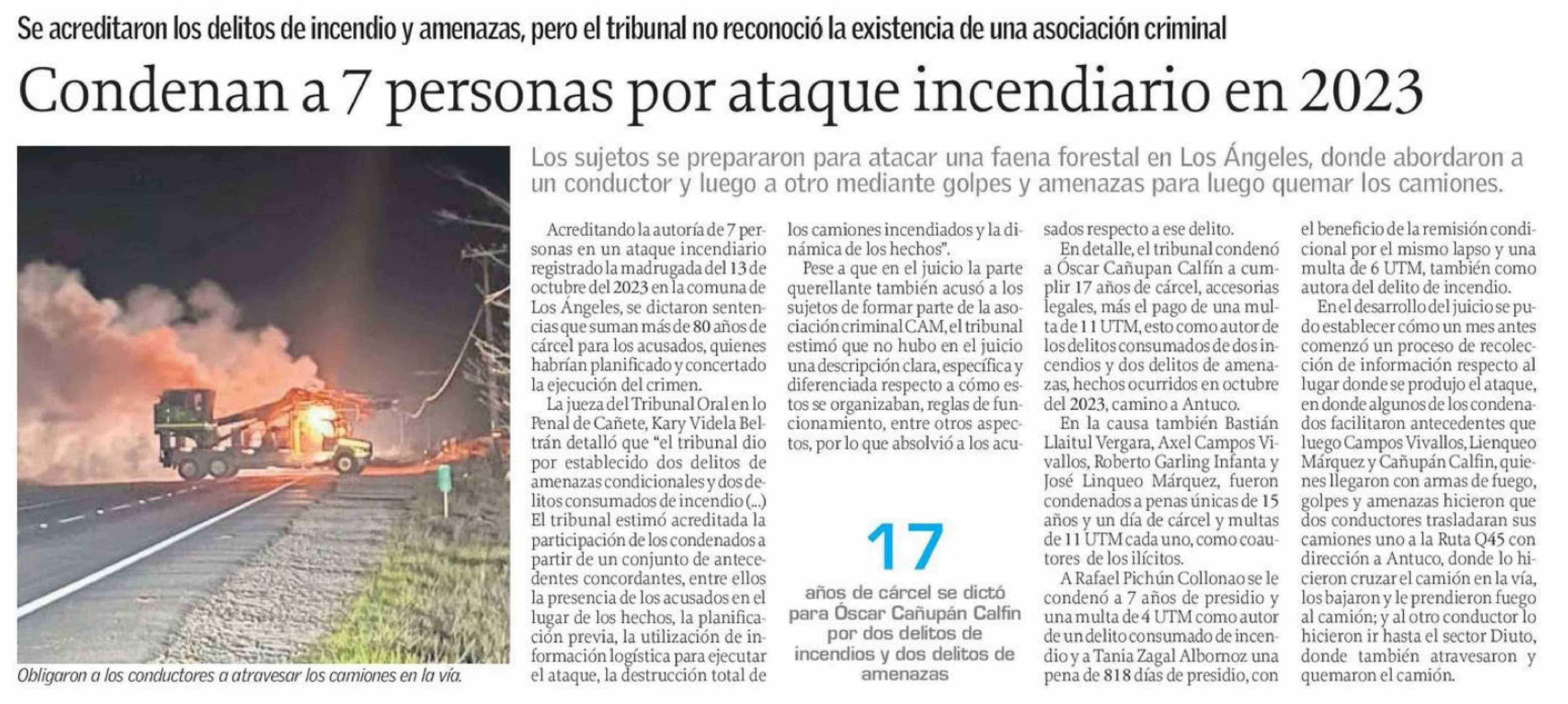 | Título: | Condenan a 7 personas por ataque incendiario en 2023 |