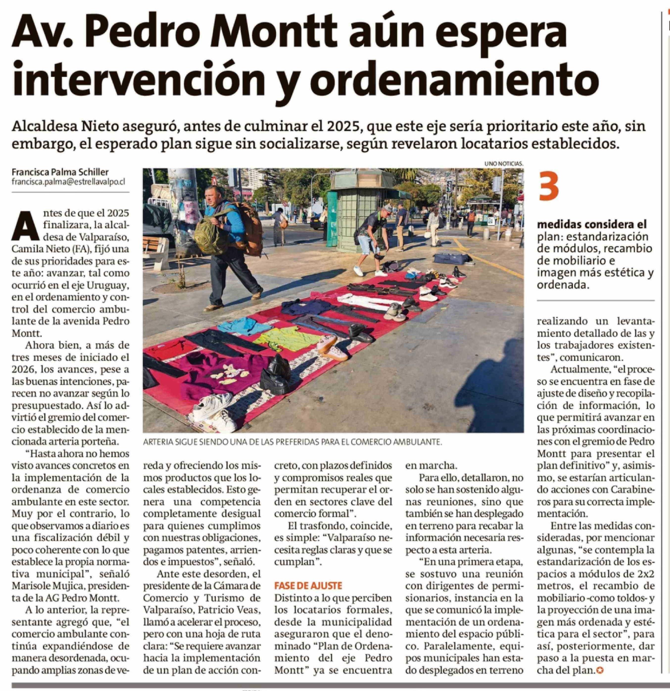 Av. Pedro Montt aún espera intervención y ordenamiento 18-03-2026 La Estrella de Valparaíso |