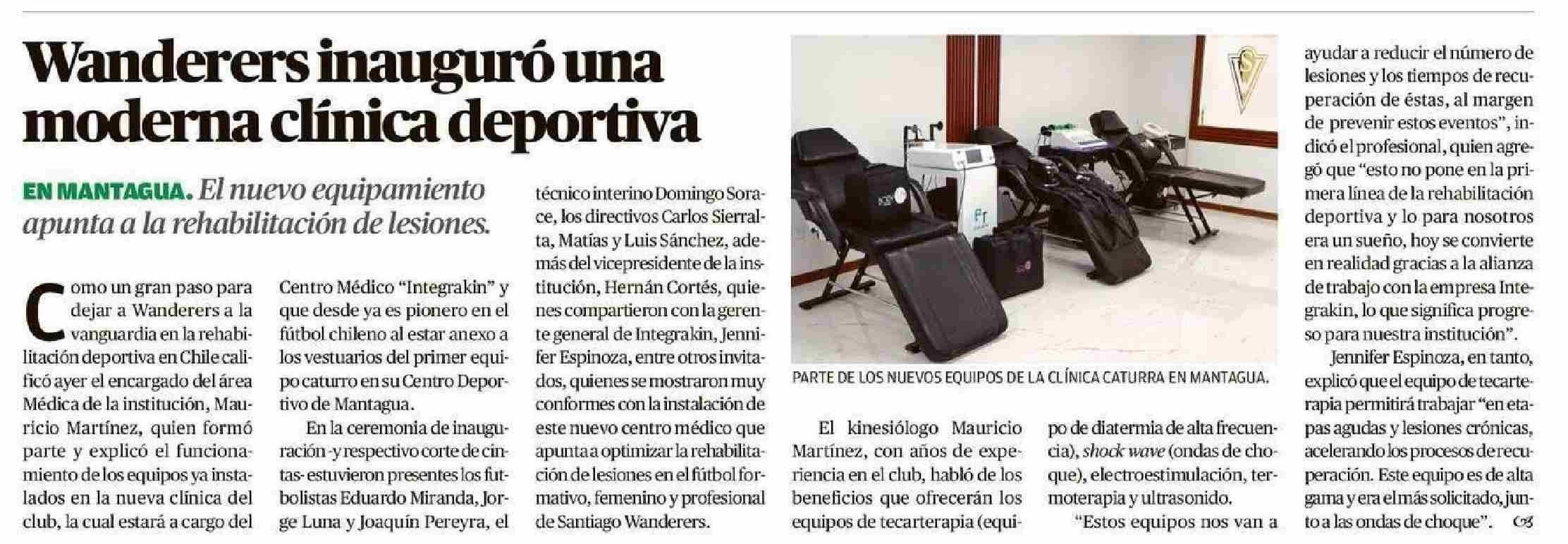 Wanderers inauguró una moderna clínica deportiva 31-05-2025 El Mercurio de Valparaíso |