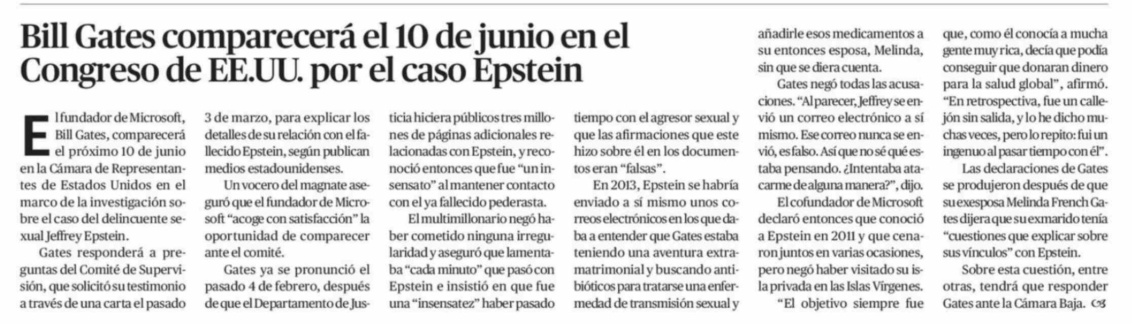 Título: Bill Gates comparecerá el 10 de junio en el Congreso de EE.UU. por el caso Epstein