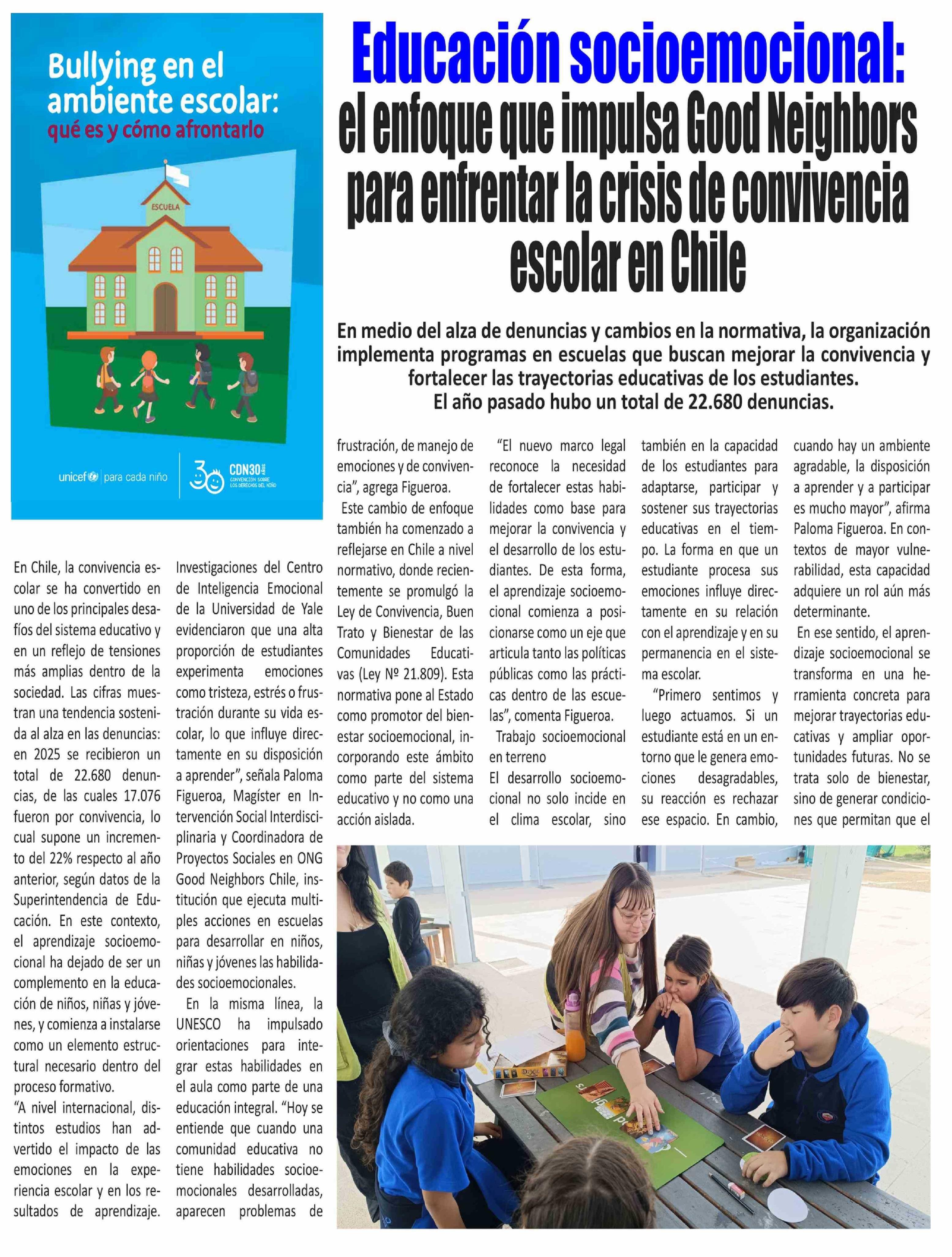| Título: | Educación socioemocional: el enfoque que impulsa Good Neighbors para enfrentar la crisis de convivencia escolar en Chile |