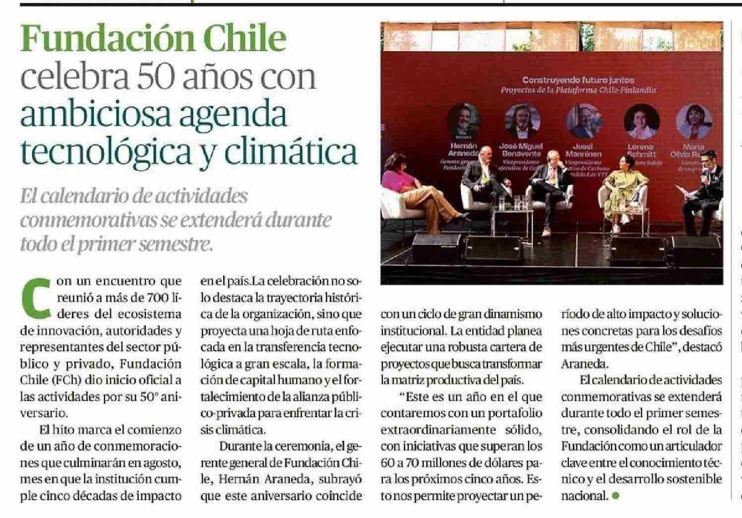 | Título: | Fundación Chile celebra 50 años con ambiciosa agenda tecnológica y climática |
