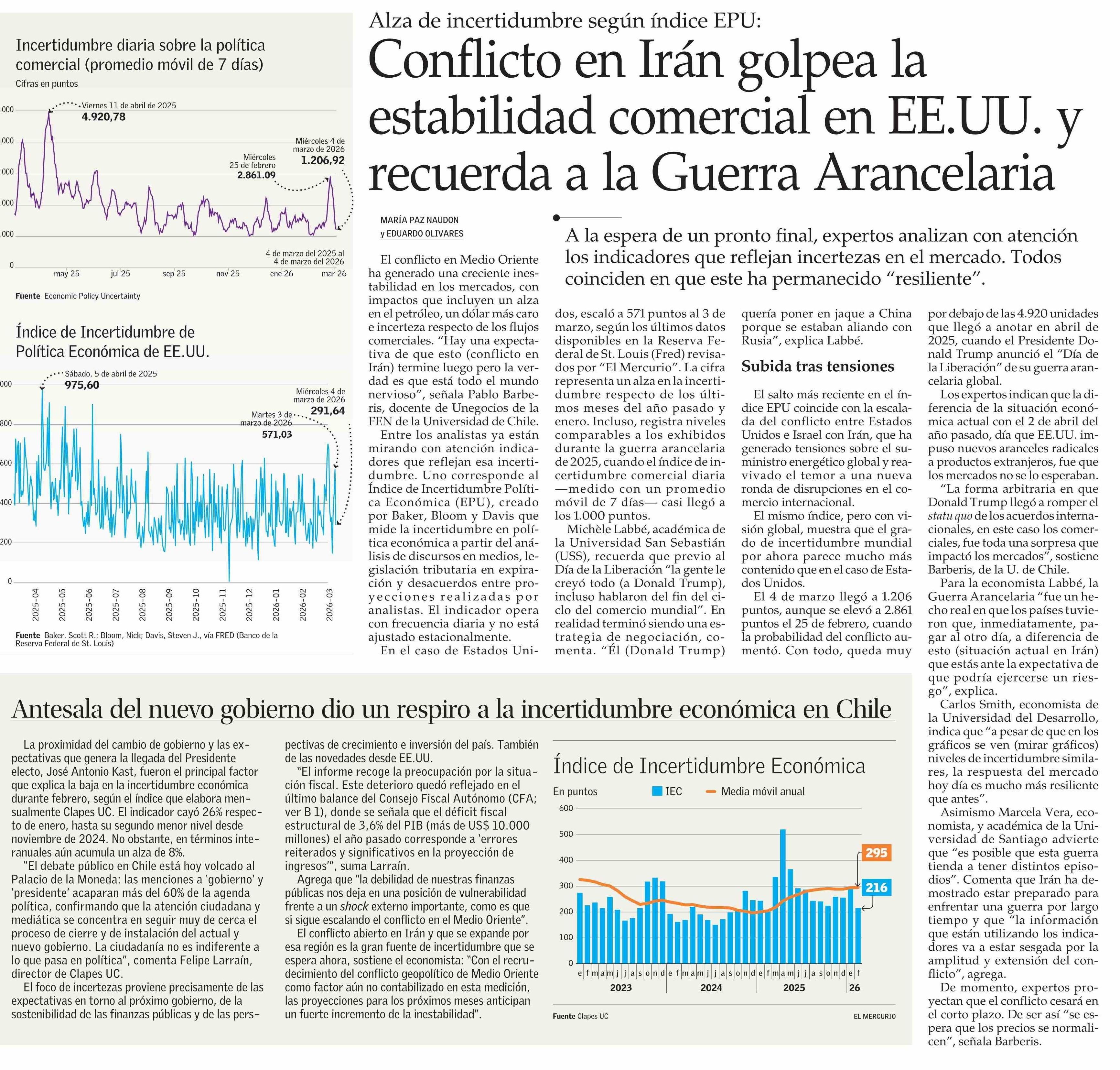Conflicto en Irán golpea la estabilidad comercial en EE.UU. y recuerda a la Guerra Arancelaria 06-03-2026 El Mercurio |