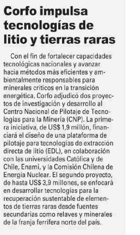 Título: Codo impulsa tecnologías de litio y tierras raras