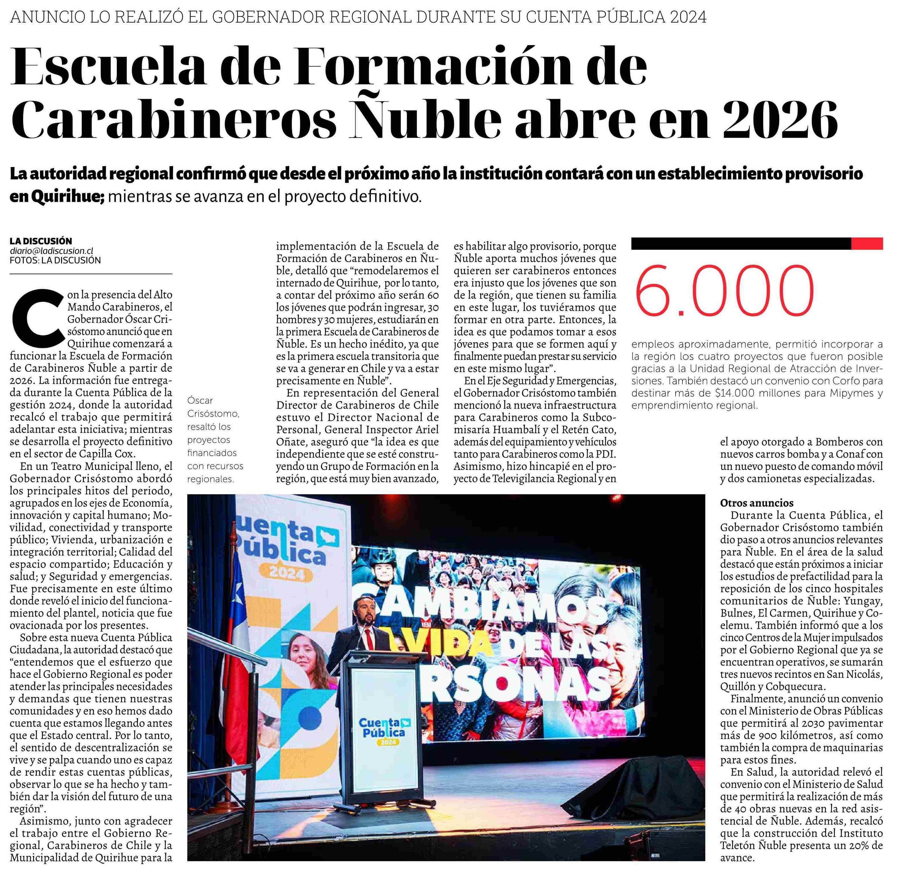 Escuela de Formación de Carabineros Ñuble abre en 2026 28-05-2025 La Discusión |