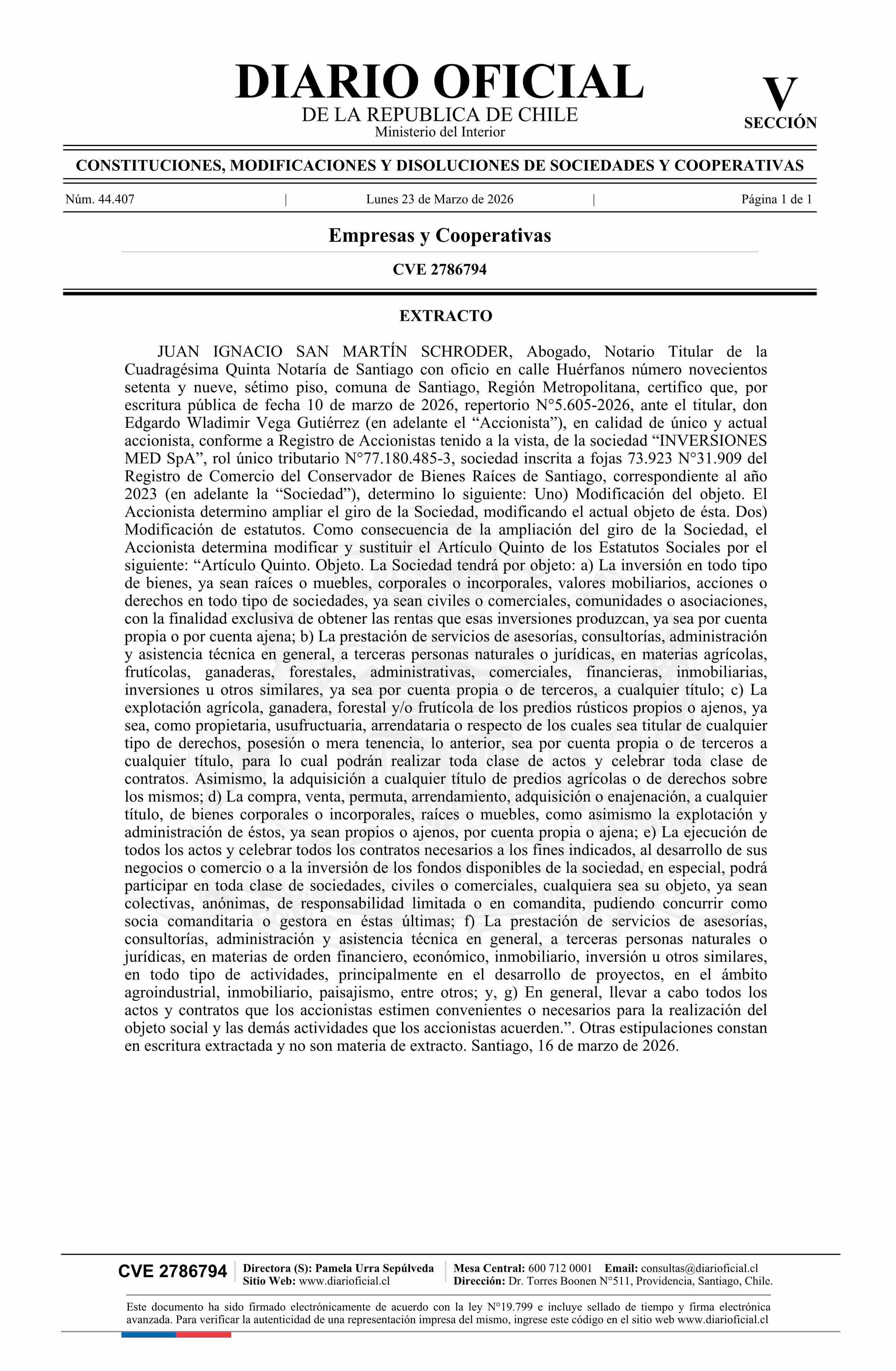 Inversiones MED SpA 77.180.485-3* 23-03-2026 Diario Oficial Edición Electrónica |