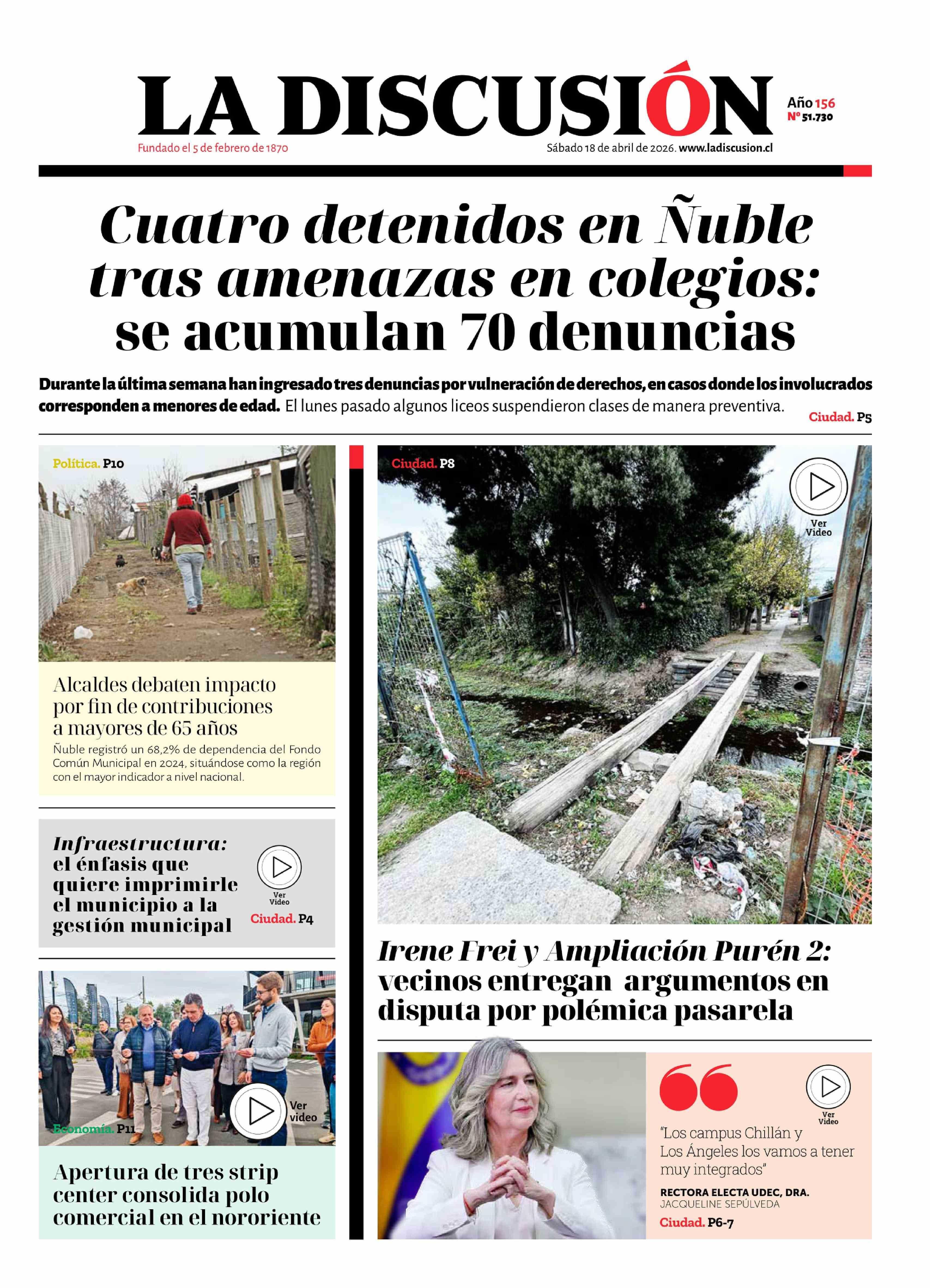 | Fecha: | 18-04-2026 | Sector: | Portada | Región: | Región del Ñuble |