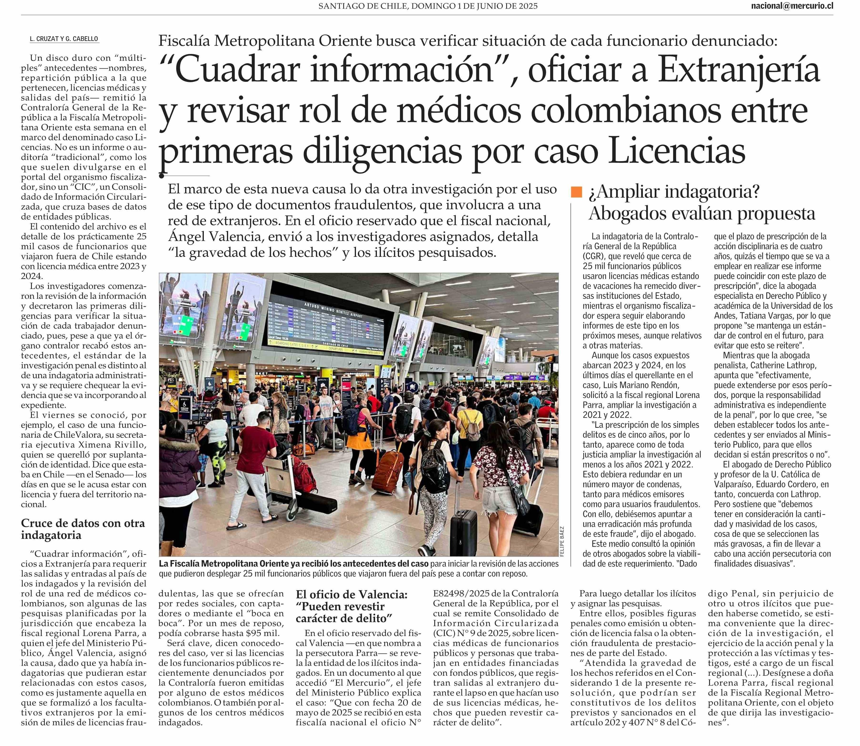 “Cuadrar información”, oficiar a Extranjería y revisar rol de médicos colombianos entre primeras diligencias por caso Licencias 01-06-2025 El Mercurio |