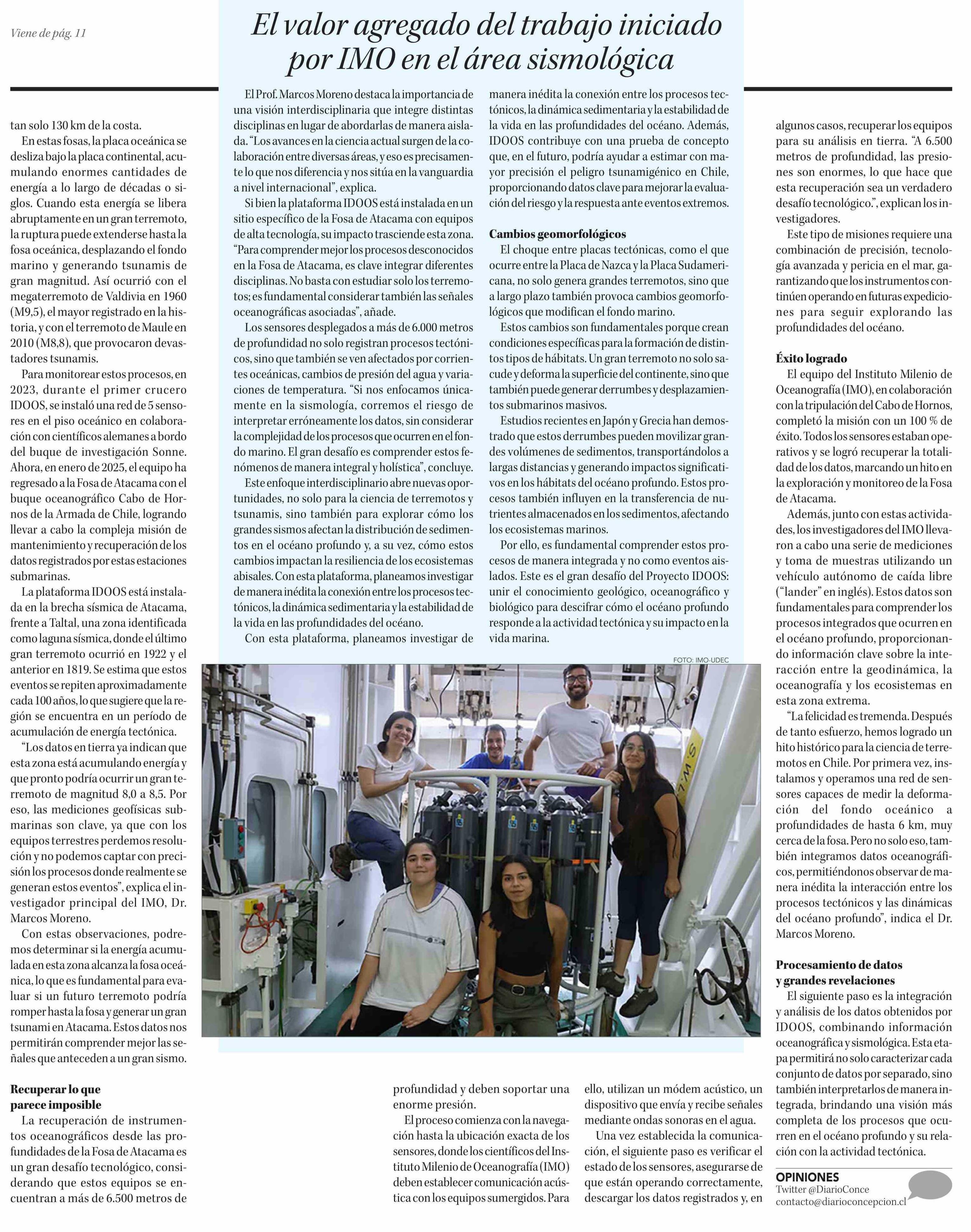 El valor agregado del trabajo iniciado por IMO en el área sismológica 05-02-2025 Diario Concepción |