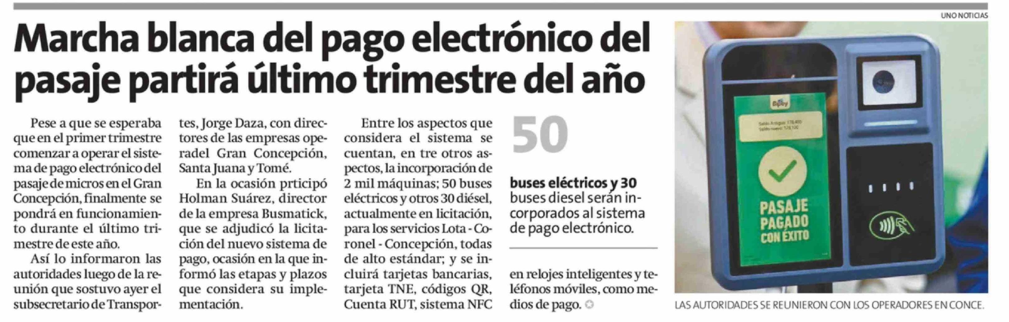 Título: Marcha blanca del pago electrónico del pasaje partirá último trimestre del año