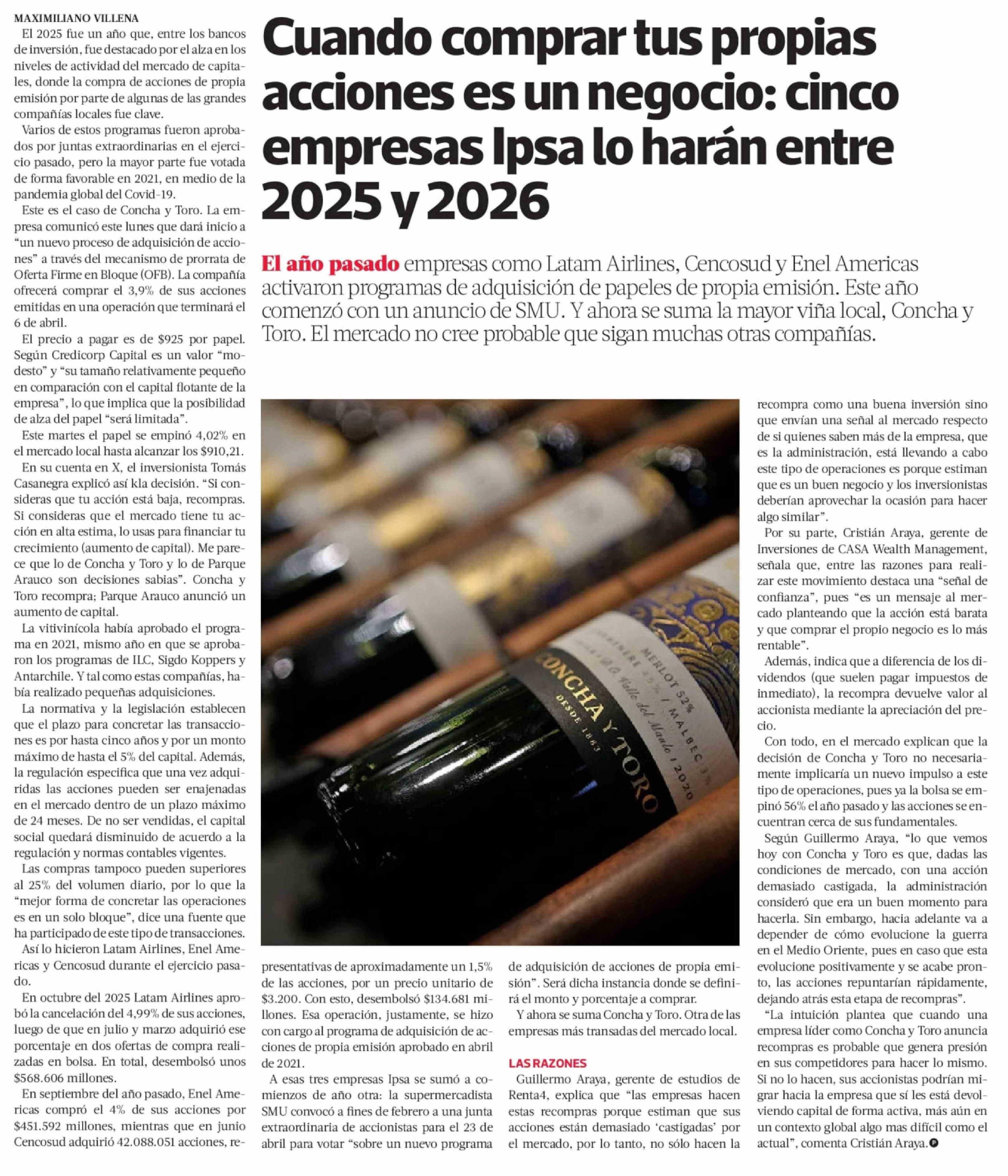 | Título: | Cuando comprar tus propias acciones es un negocio: cinco empresas Ipsa lo harán entre 2025 y 2026 |