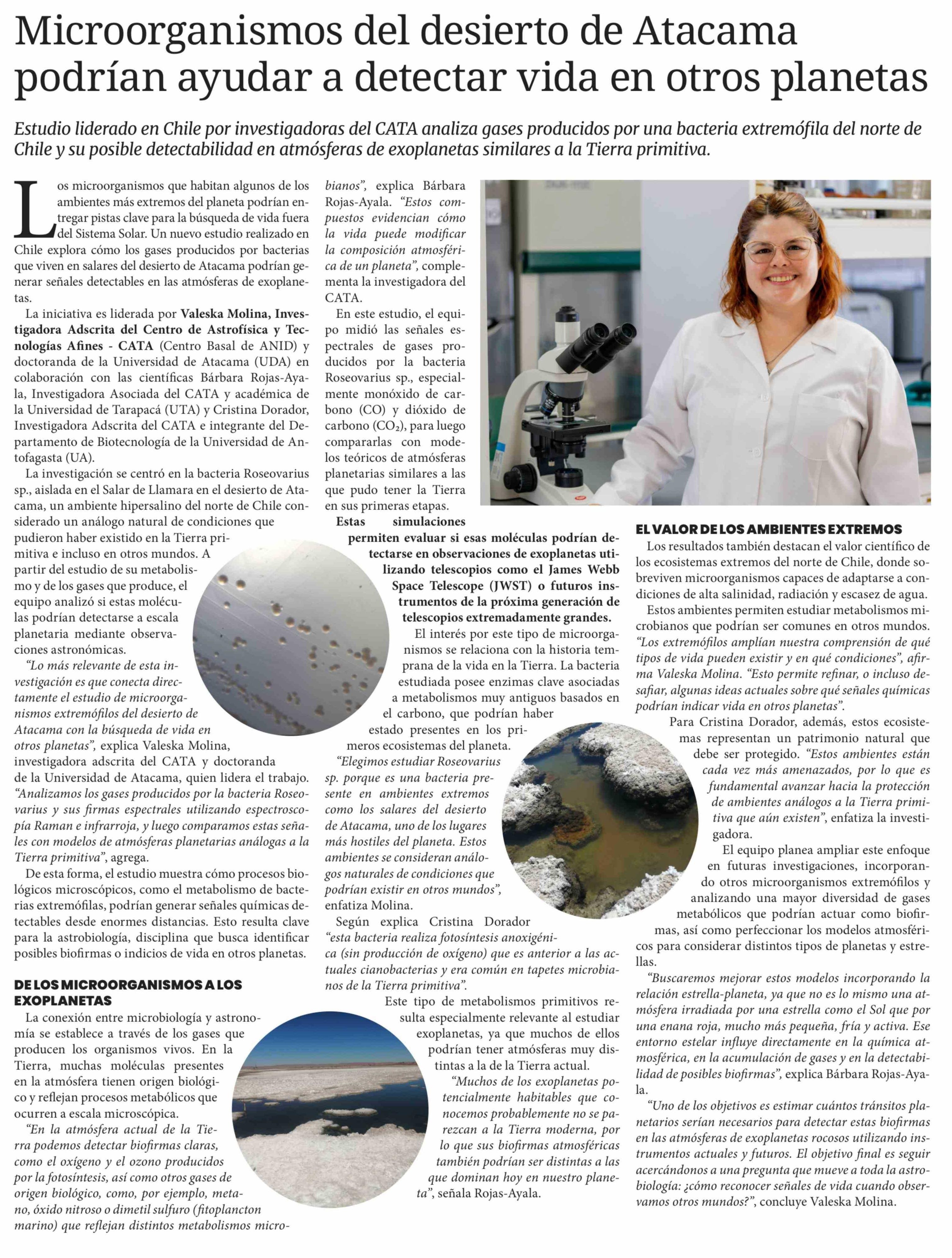 Microorganismos del desierto de Atacama podrían ayudar a detectar vida en otros planetas 14-04-2026 Diario Chañarcillo |