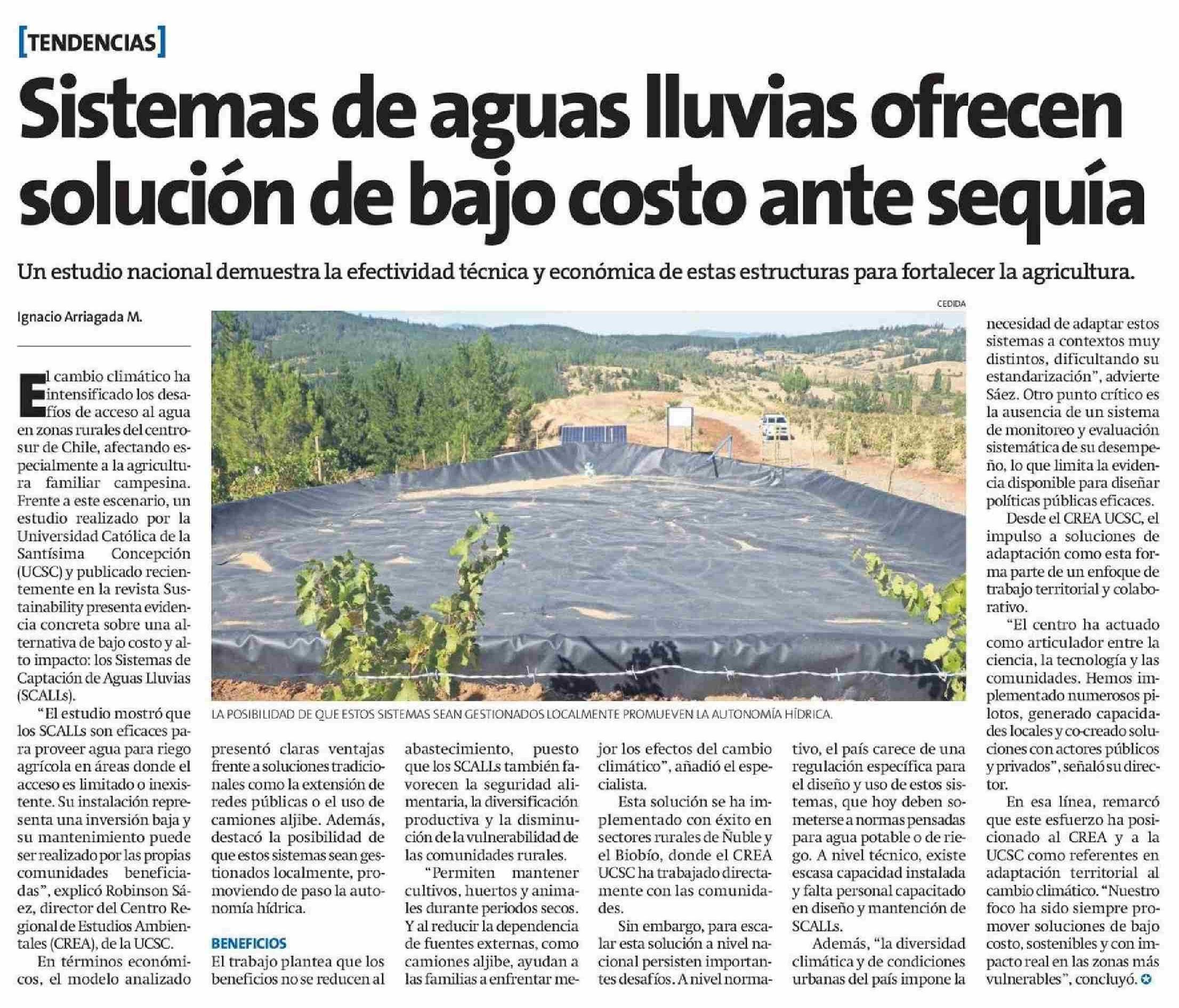 Sistemas de aguas lluvias ofrecen solución de bajo costo ante sequía 20-05-2025 La Estrella de Antofagasta |