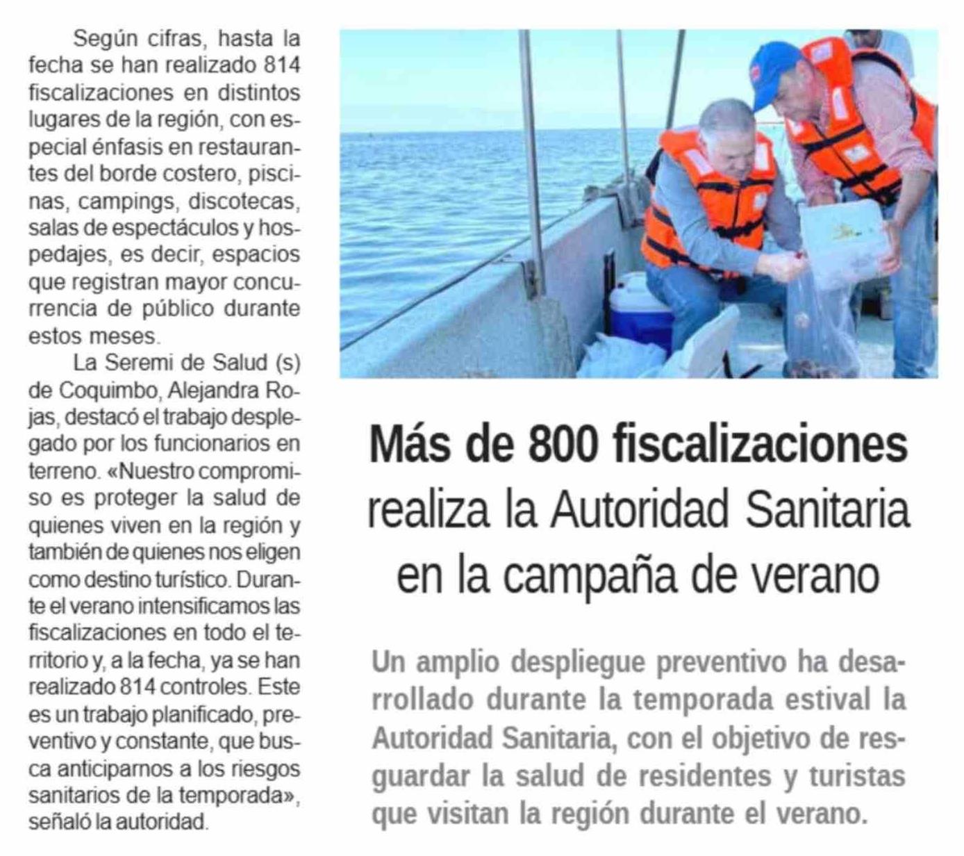 Título: Más de 800 fiscalizaciones realiza la Autoridad Sanitaria en la campaña de verano