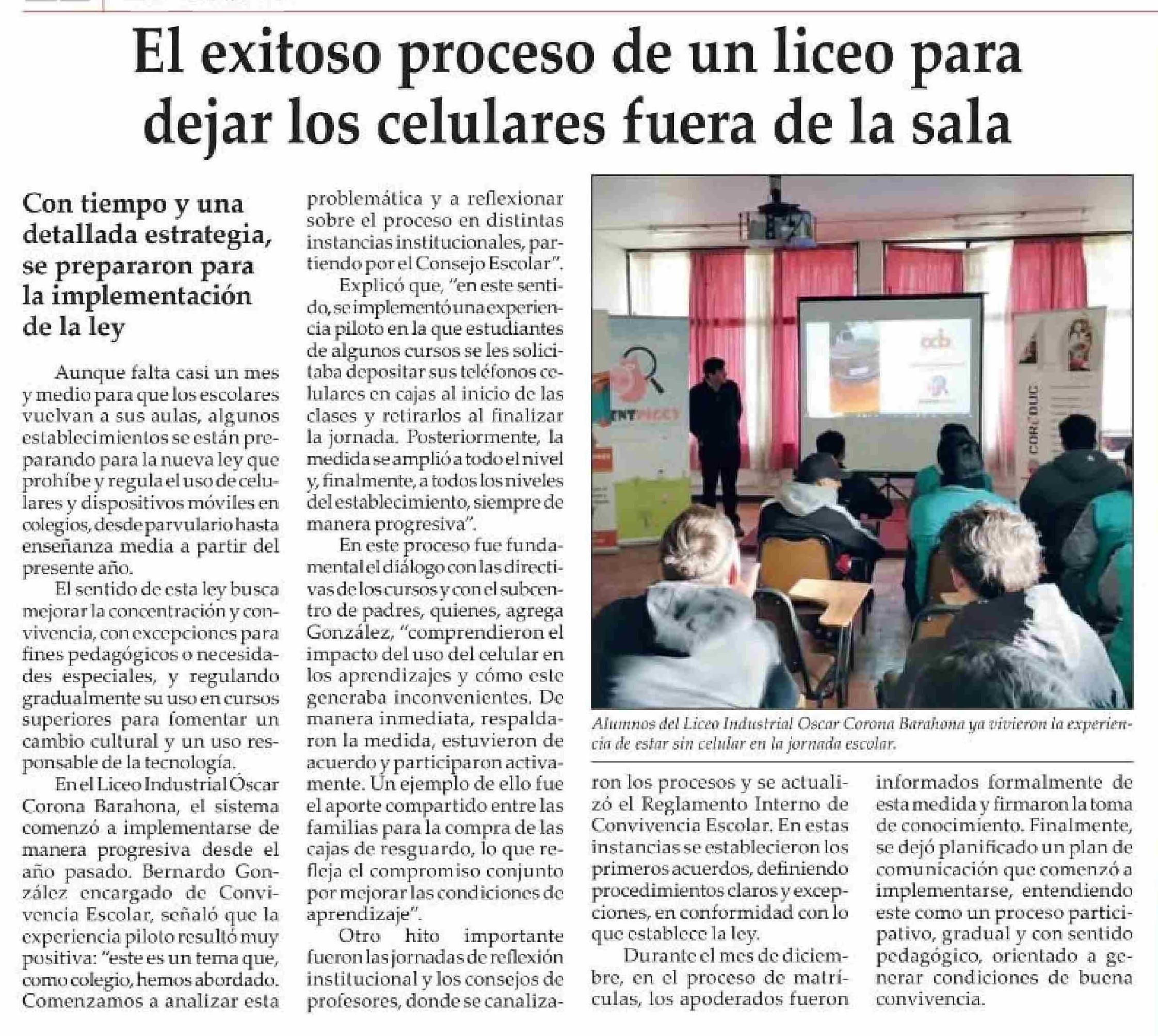 Título: El exitoso proceso de un liceo para dejar los celulares fuera de la sala