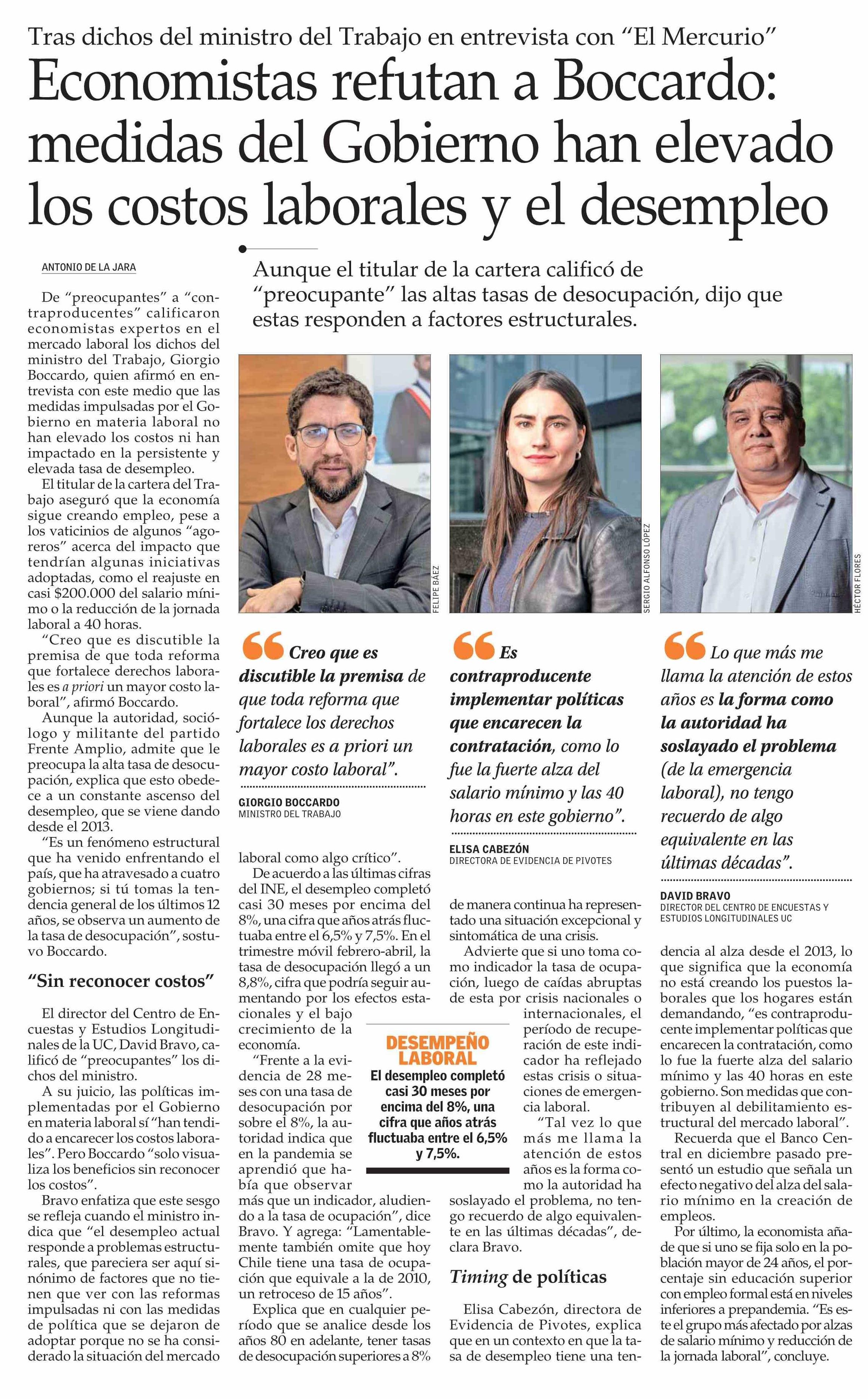 Título: Economistas refutan a Boccardo: medidas del Gobierno han elevado los costos laborales y el desempleo