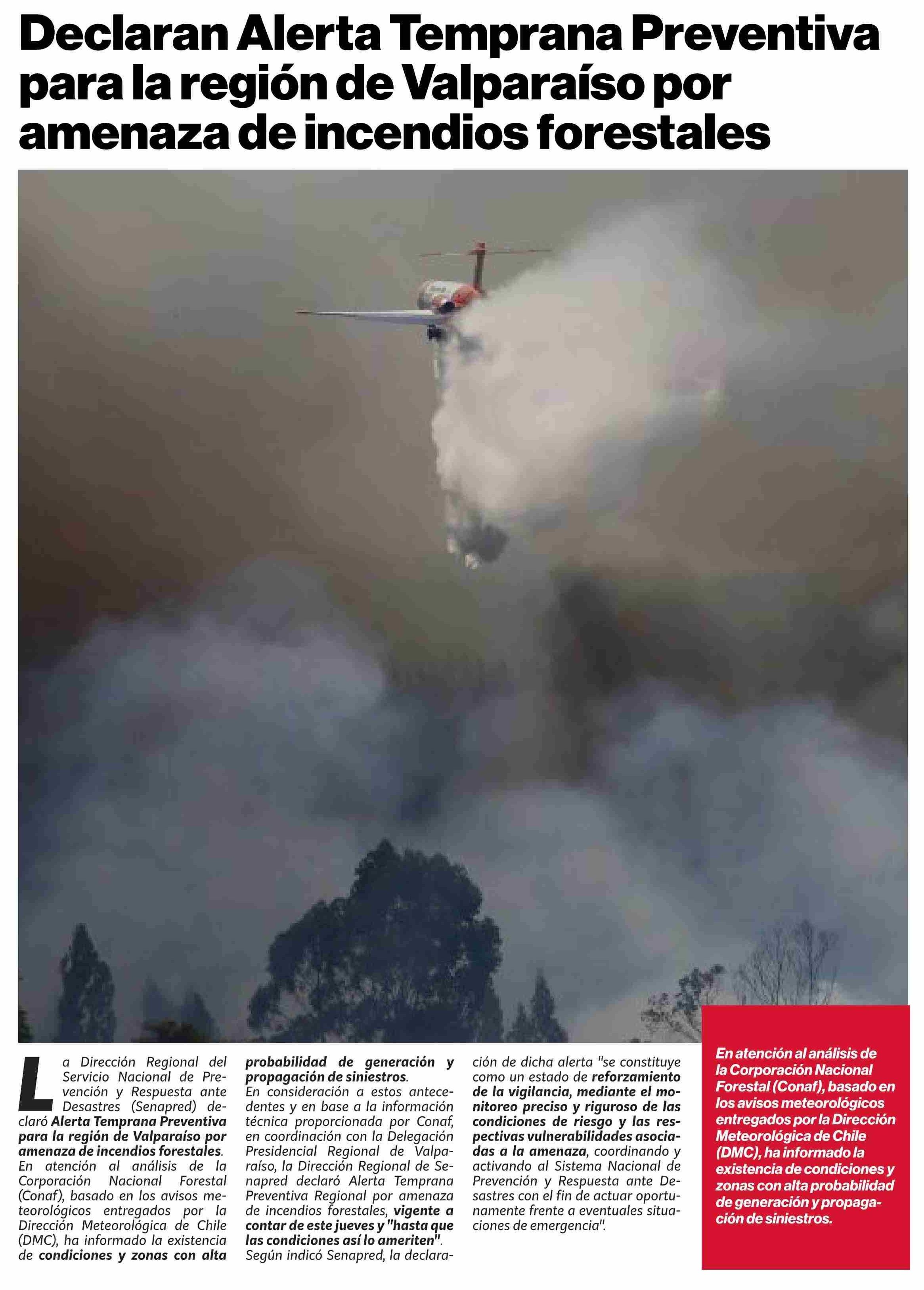 Título: Declaran Alerta Temprana Preventiva para la región de Valparaíso por amenaza de incendios forestales