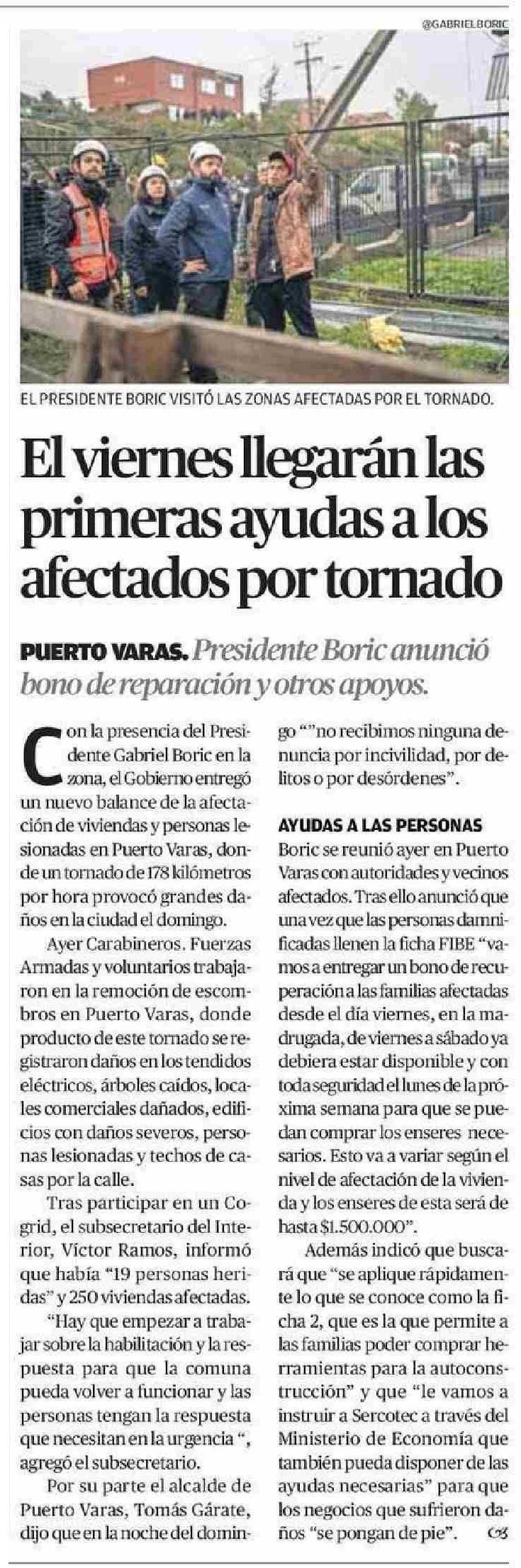 El viernes llegarán las primeras ayudas a los afectados por tornado 27-05-2025 El Mercurio de Calama |