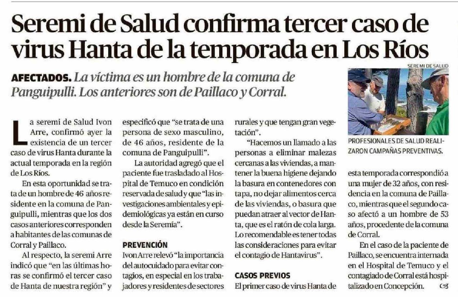 | Título: | Seremi de Salud confirma tercer caso de virus Hanta de la temporada en Los Ríos |