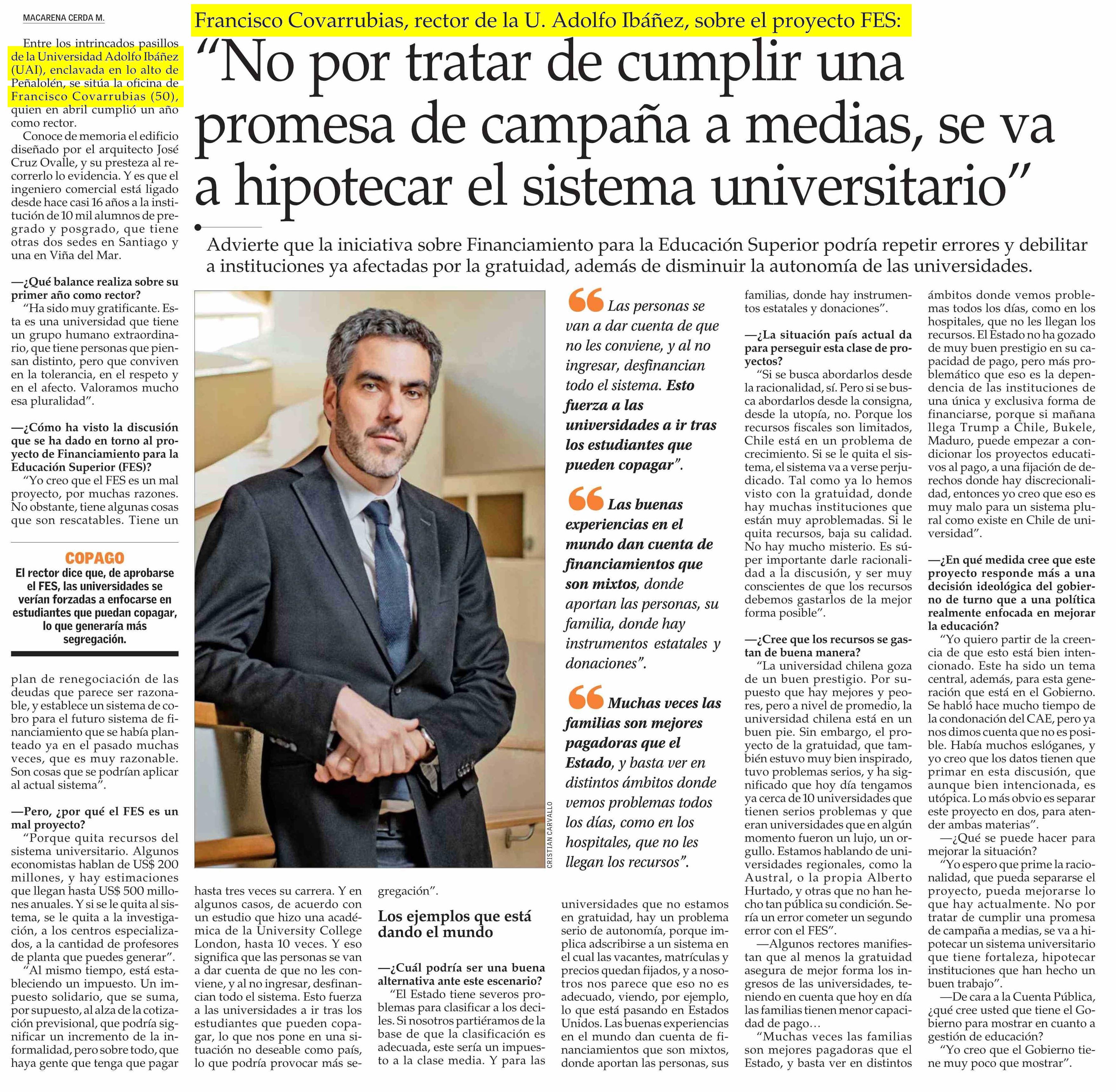 Título: “No por tratar de cumplir una promesa de campaña a medias, se va a hipotecar el sistema universitario”
