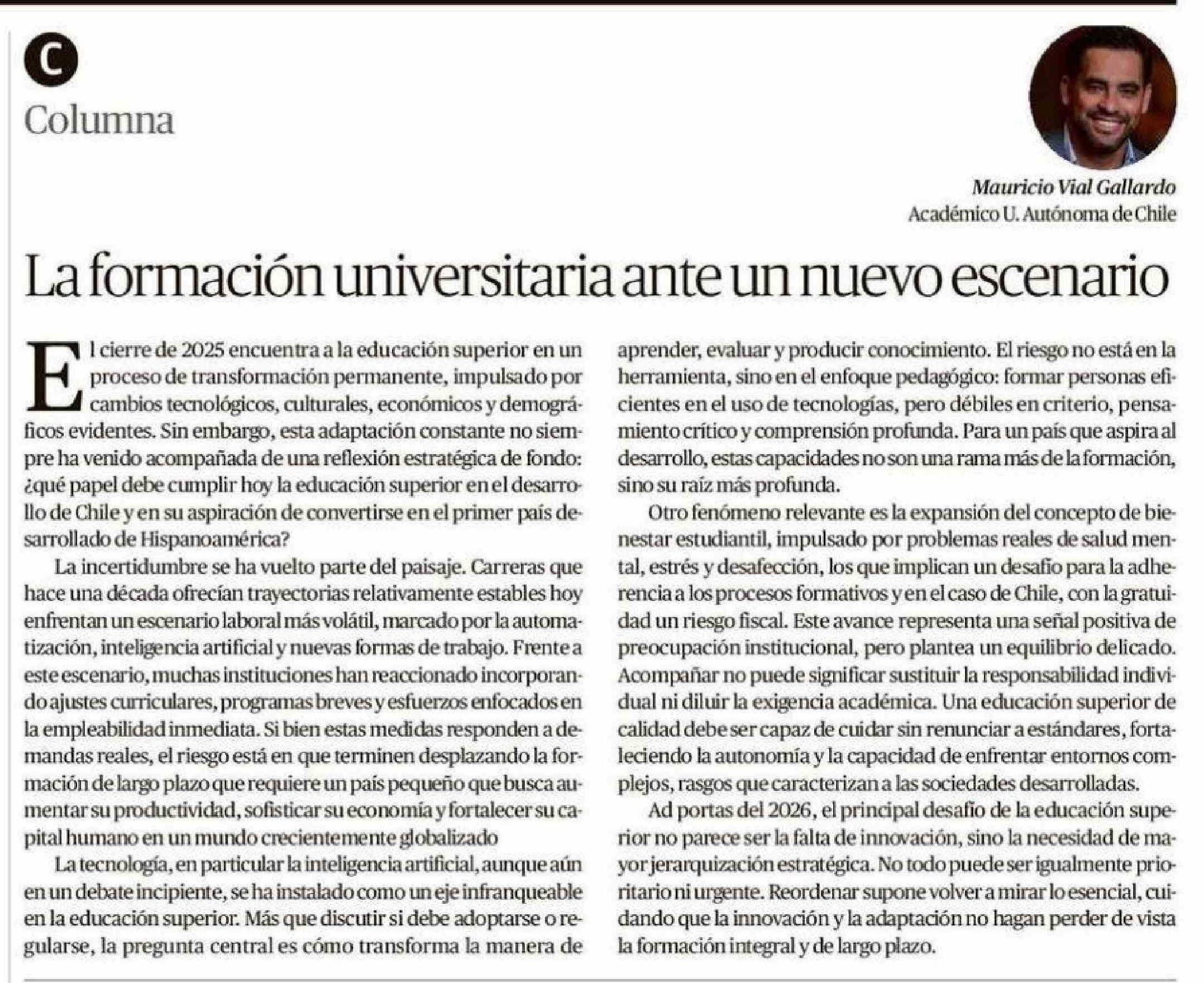 Columnas de Opinión: La formación universitaria ante un nuevo escenario