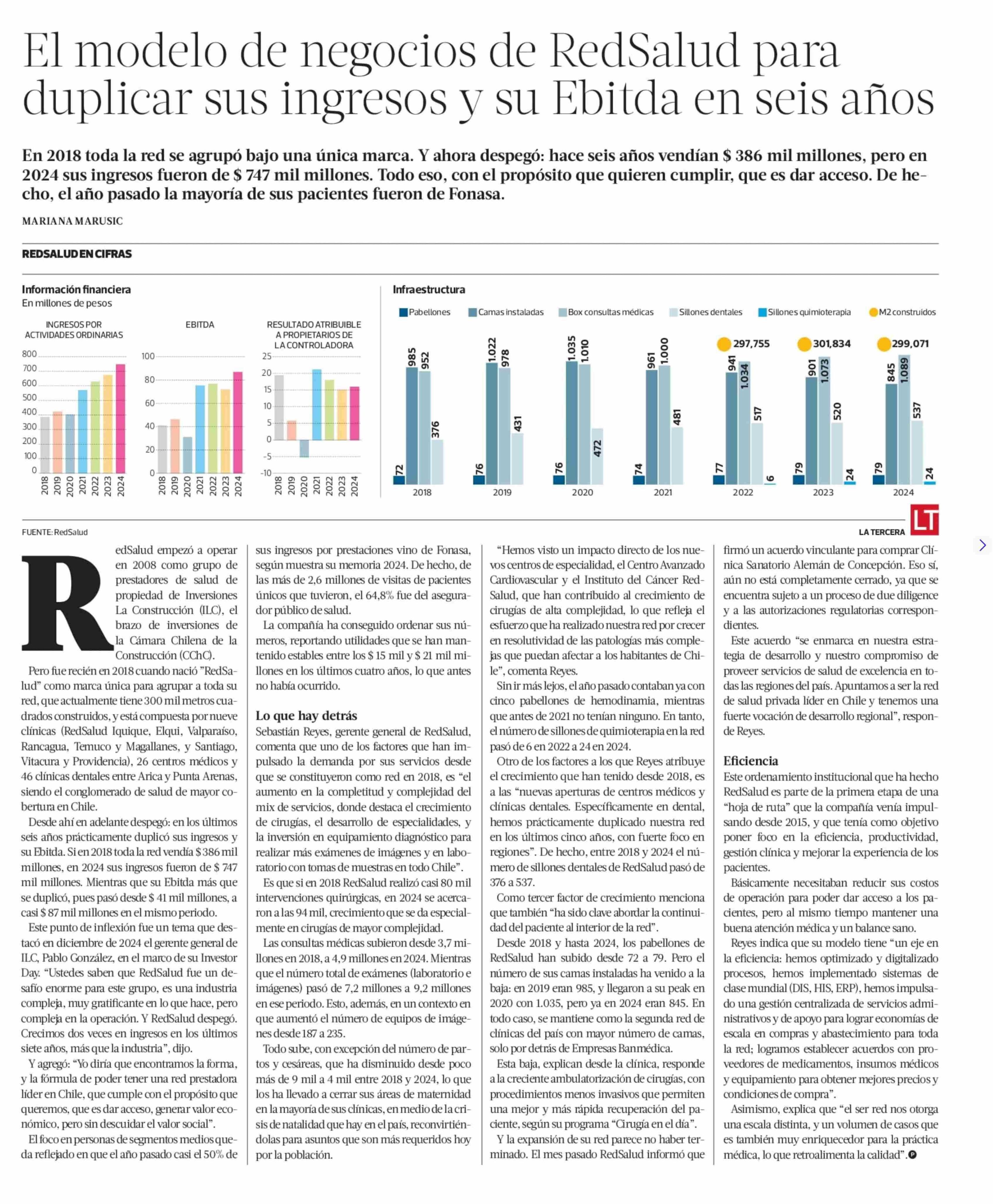 El modelo de negocios de RedSalud para duplicar sus ingresos y su Ebitda en seis años 14-06-2025 La Tercera |