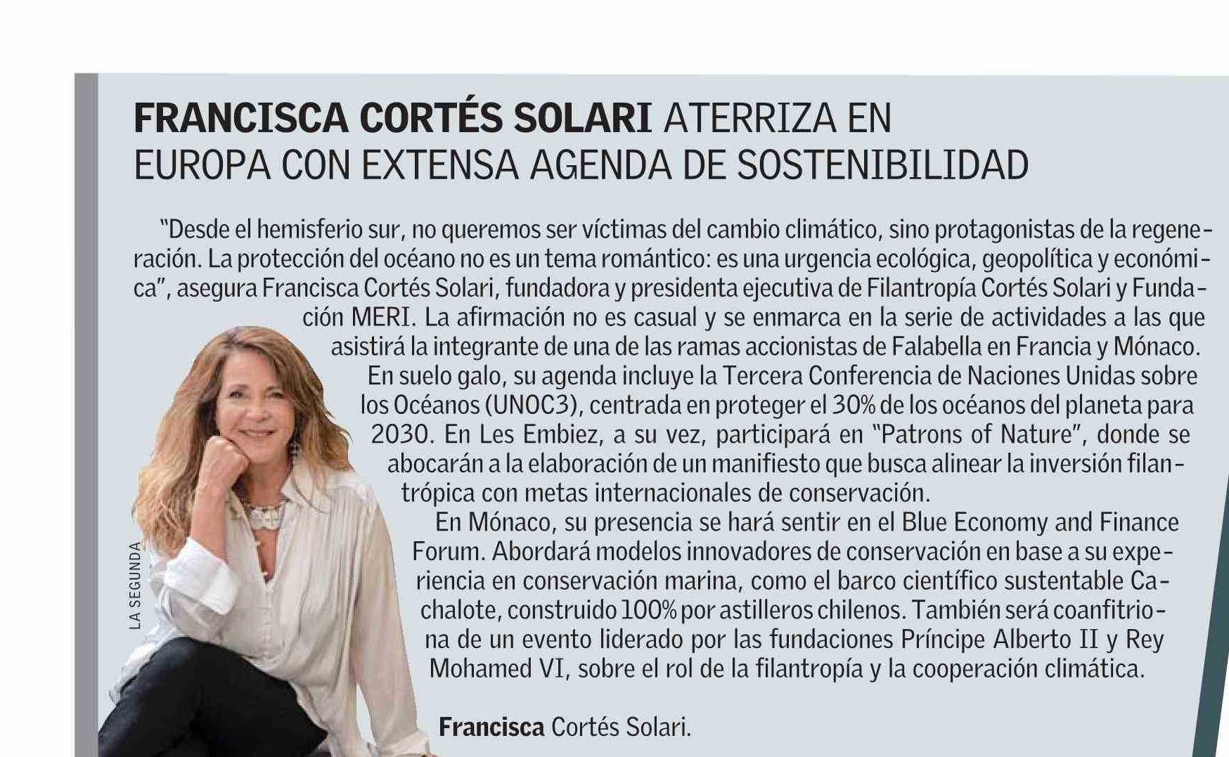 FRANCISCA CORTÉS SOLARI ATERRIZA EN EUROPA CON EXTENSA AGENDA DE SOSTENIBILIDAD 02-06-2025 El Mercurio |