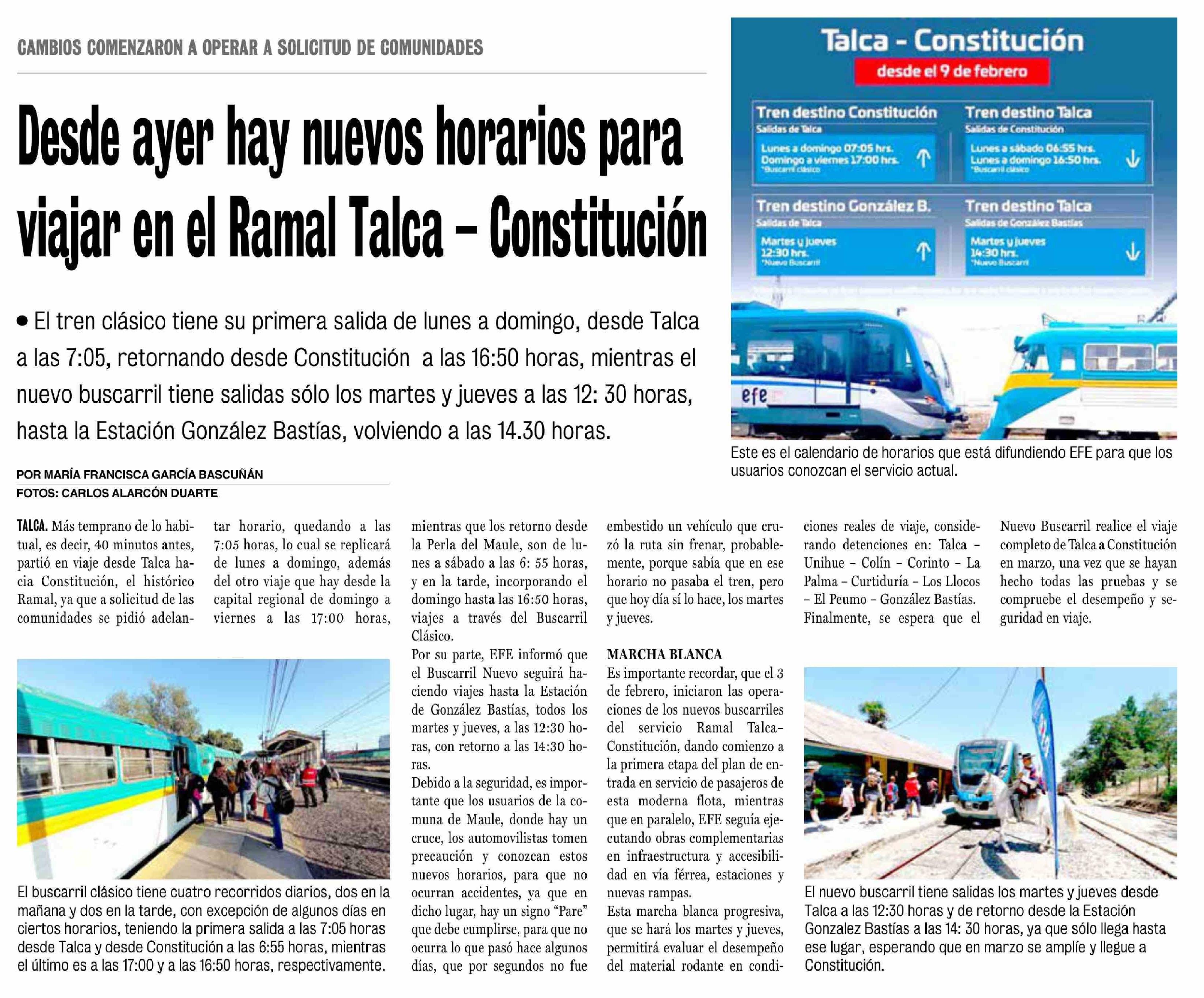 Título: Desde ayer hay nuevos horarios para viajar en el Ramal Talca - Constitución