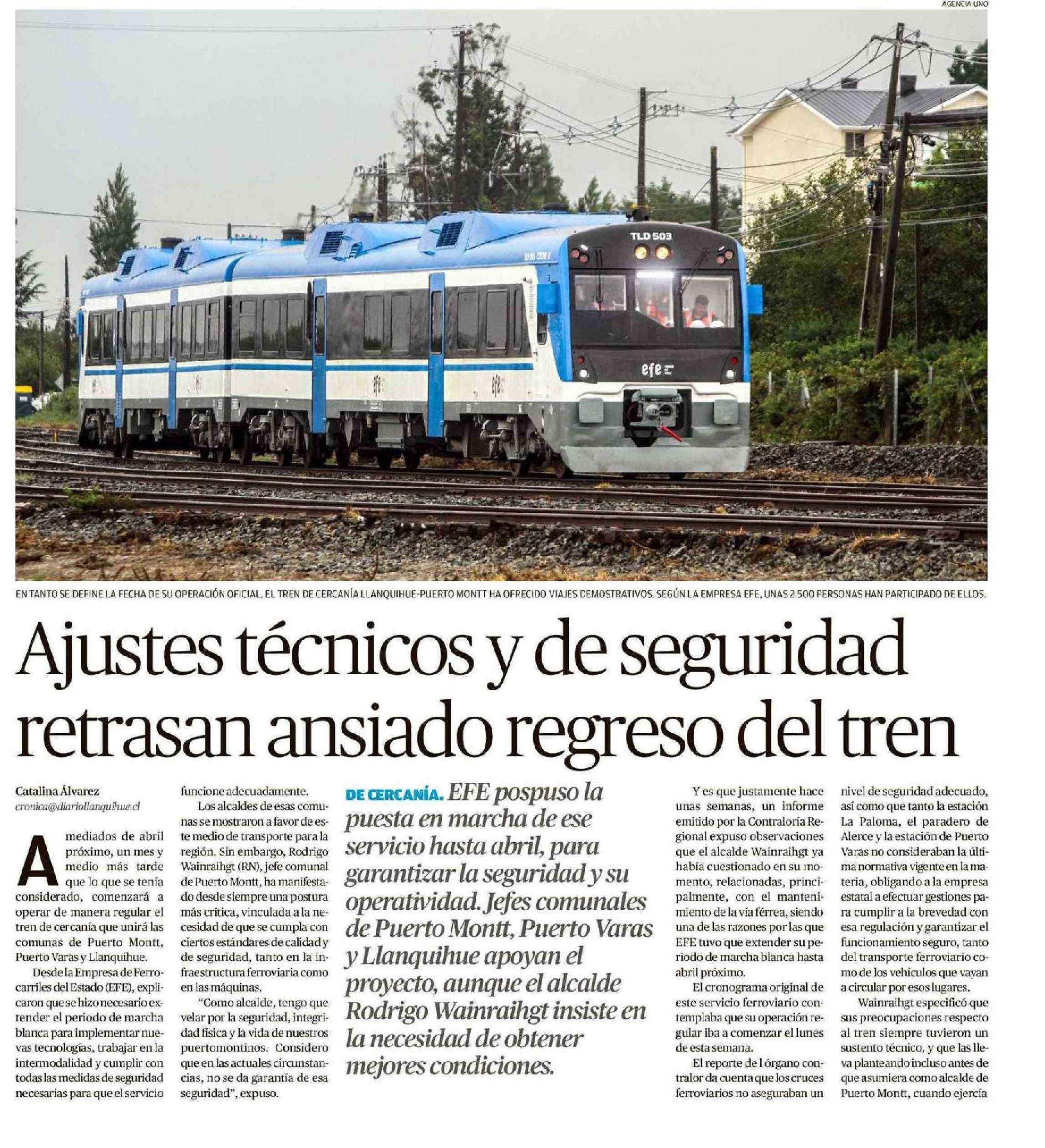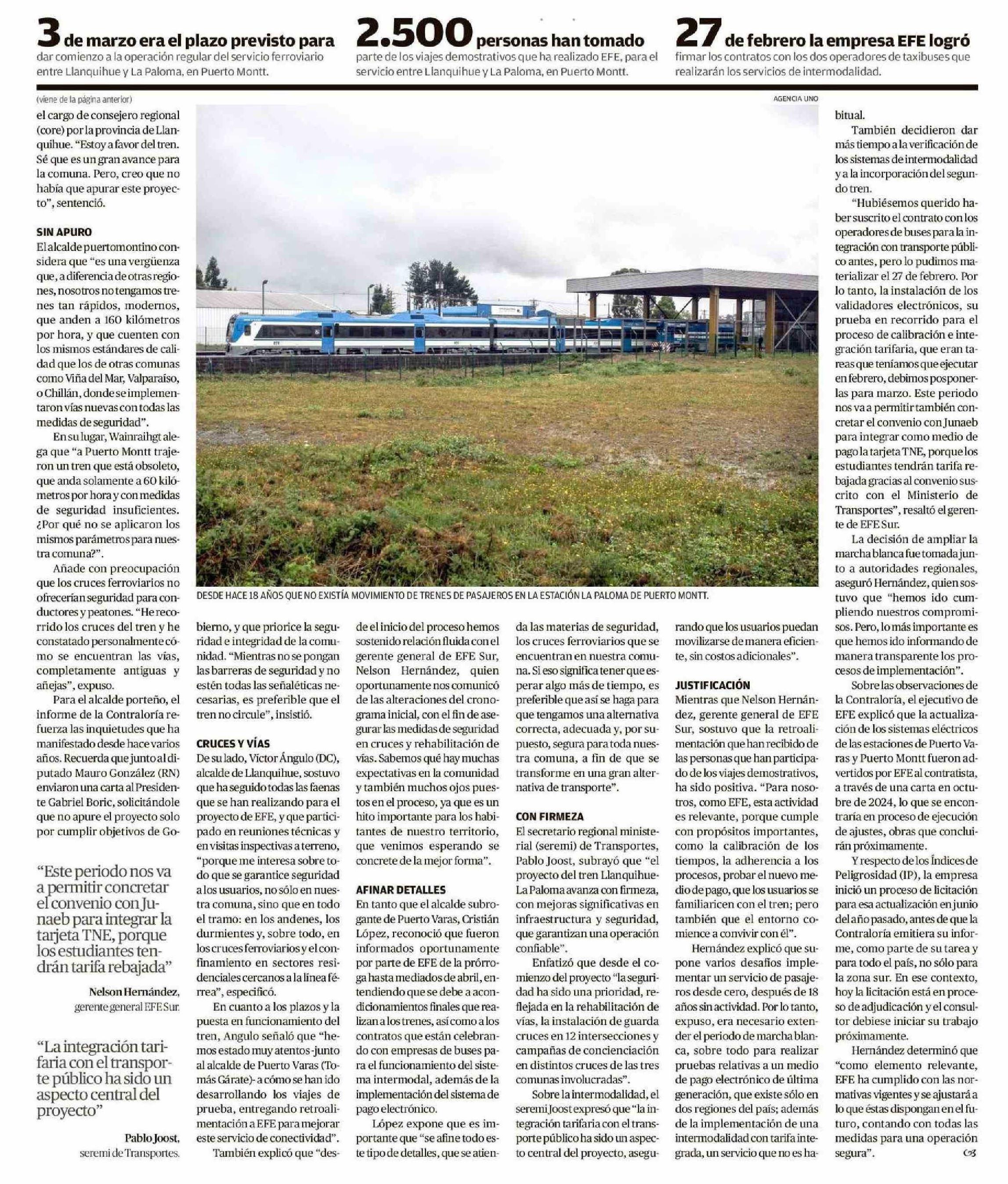 Ajustes técnicos y de seguridad retrasan ansiado regreso del tren 08-03-2025 El Llanquihue |