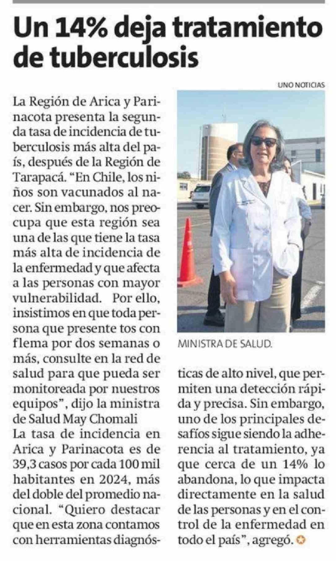 Un 14% deja tratamiento de tuberculosis 26-04-2026 La Estrella de Arica |