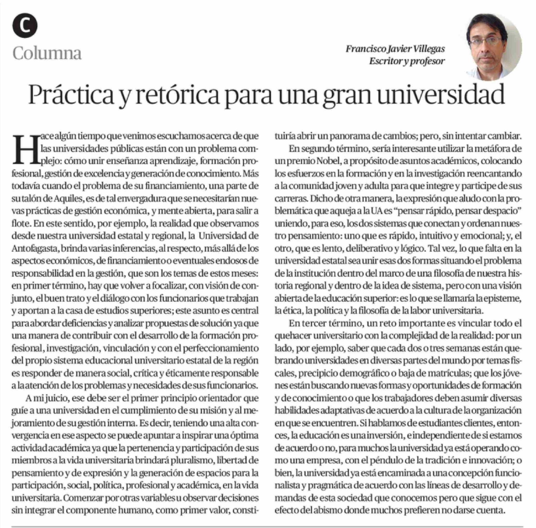 Columnas de Opinión: Práctica y retórica para una gran universidad