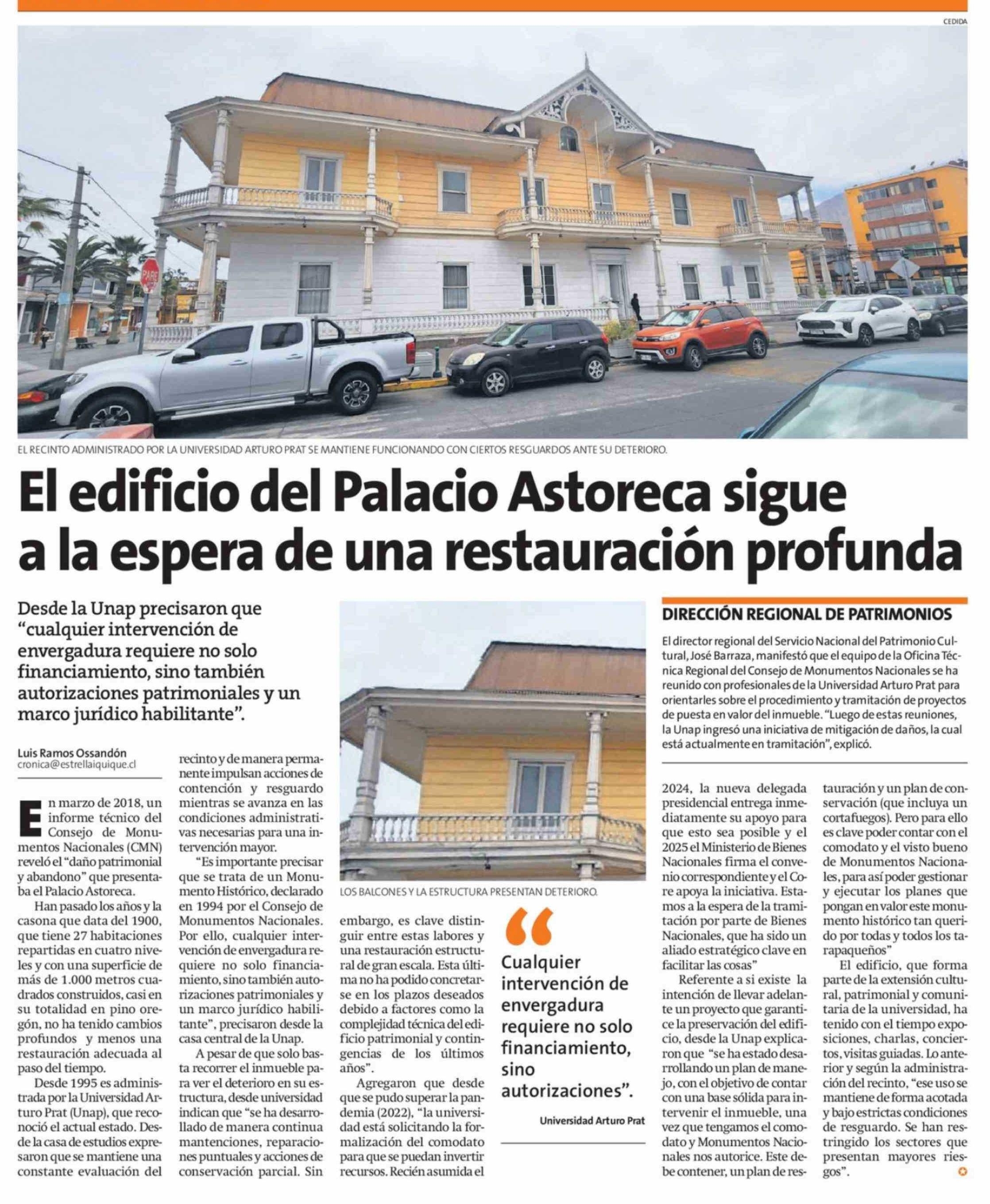 El edificio del Palacio Astoreca sigue a la espera de una restauración profunda 14-04-2026 La Estrella de Iquique |