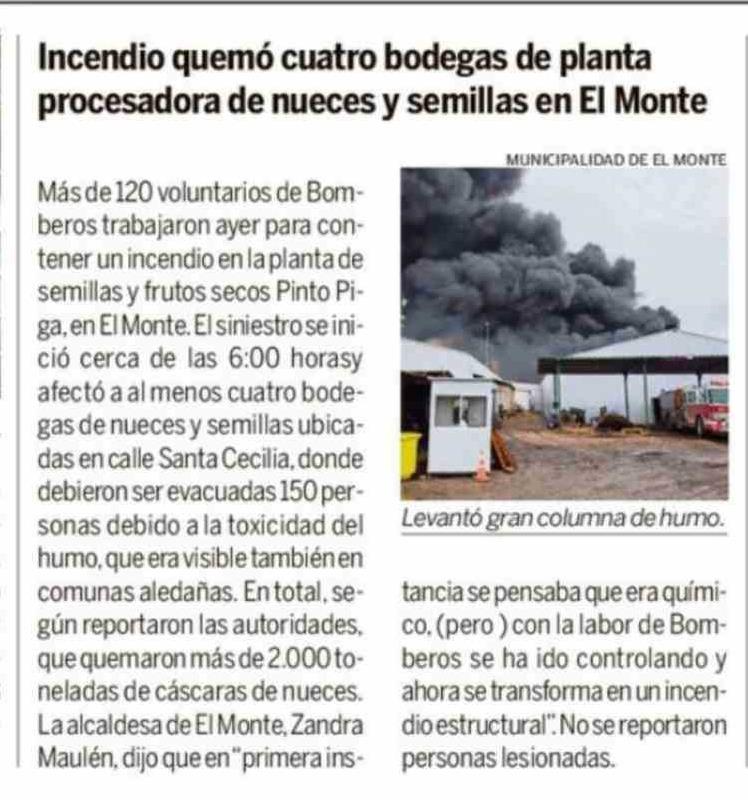 Título: Incendio quemó cuatro bodegas de planta procesadora de nueces y semillas en El Monte