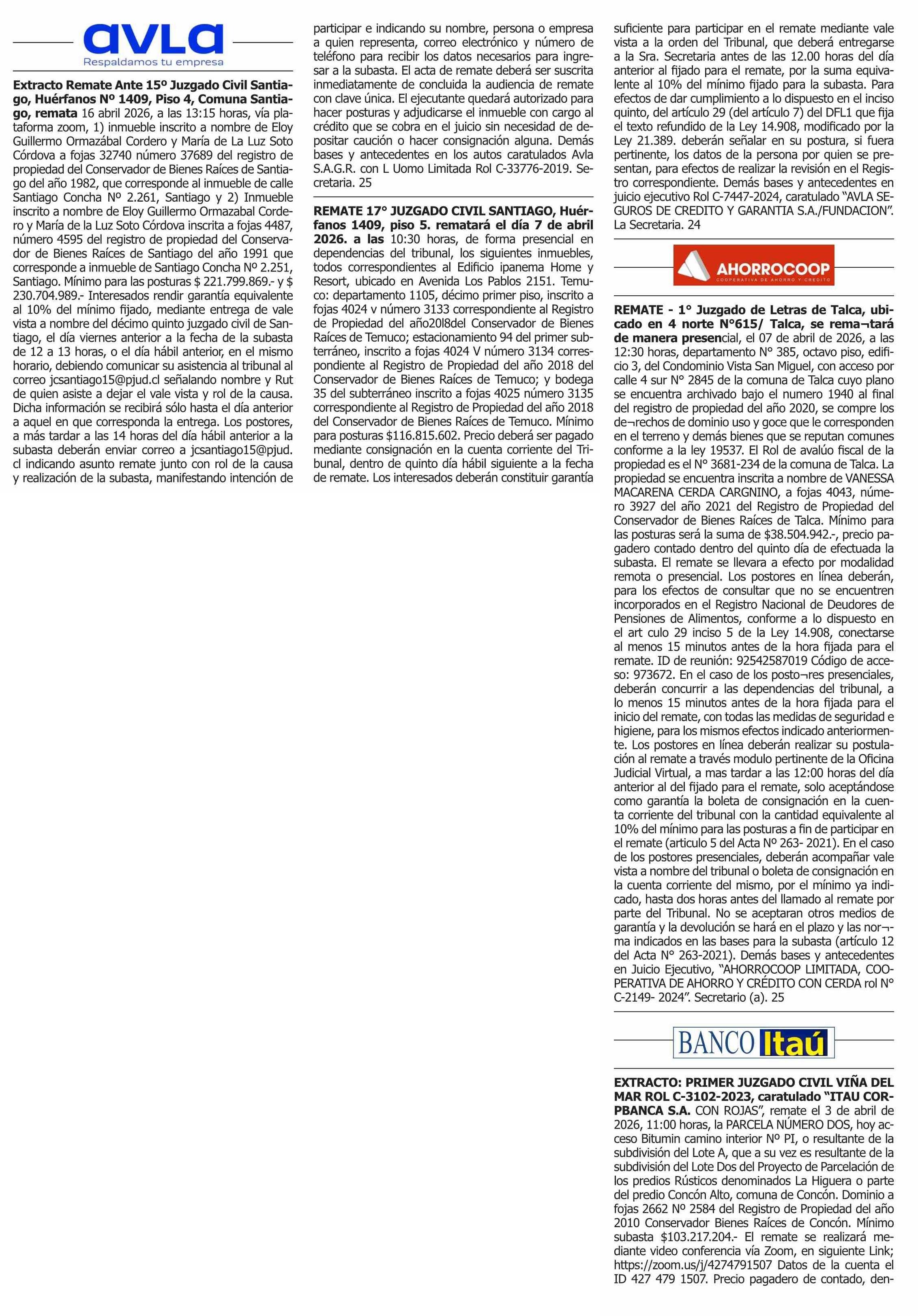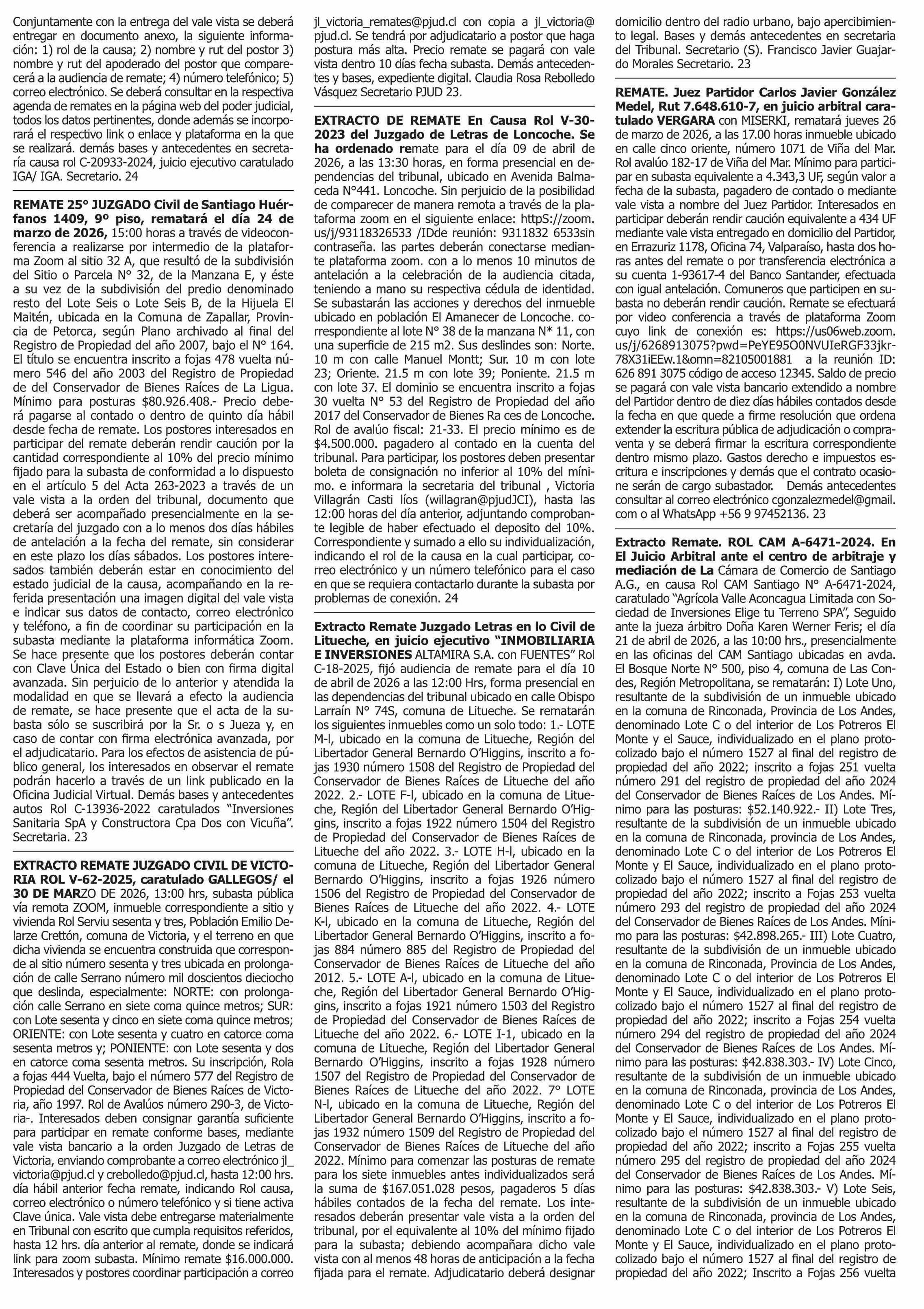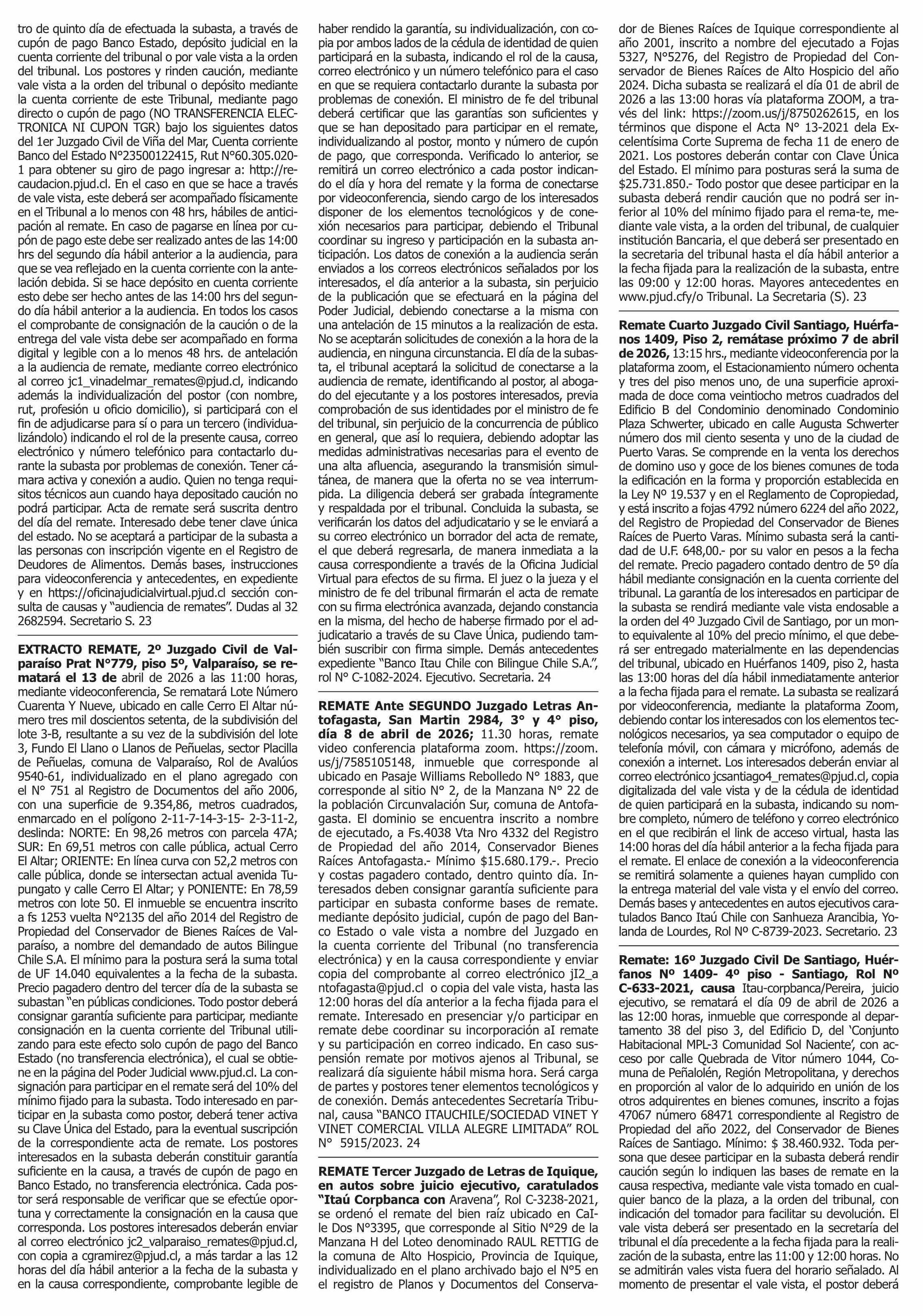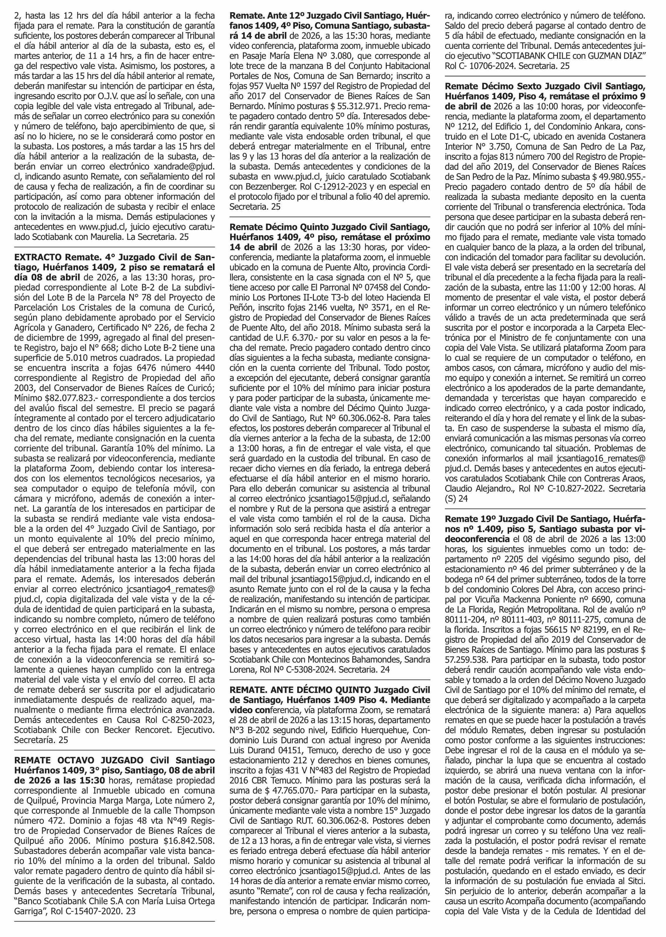 | Fecha: | 23-03-2026 | Sector: | Remates | Región: | Región Metropolitana de Santiago |