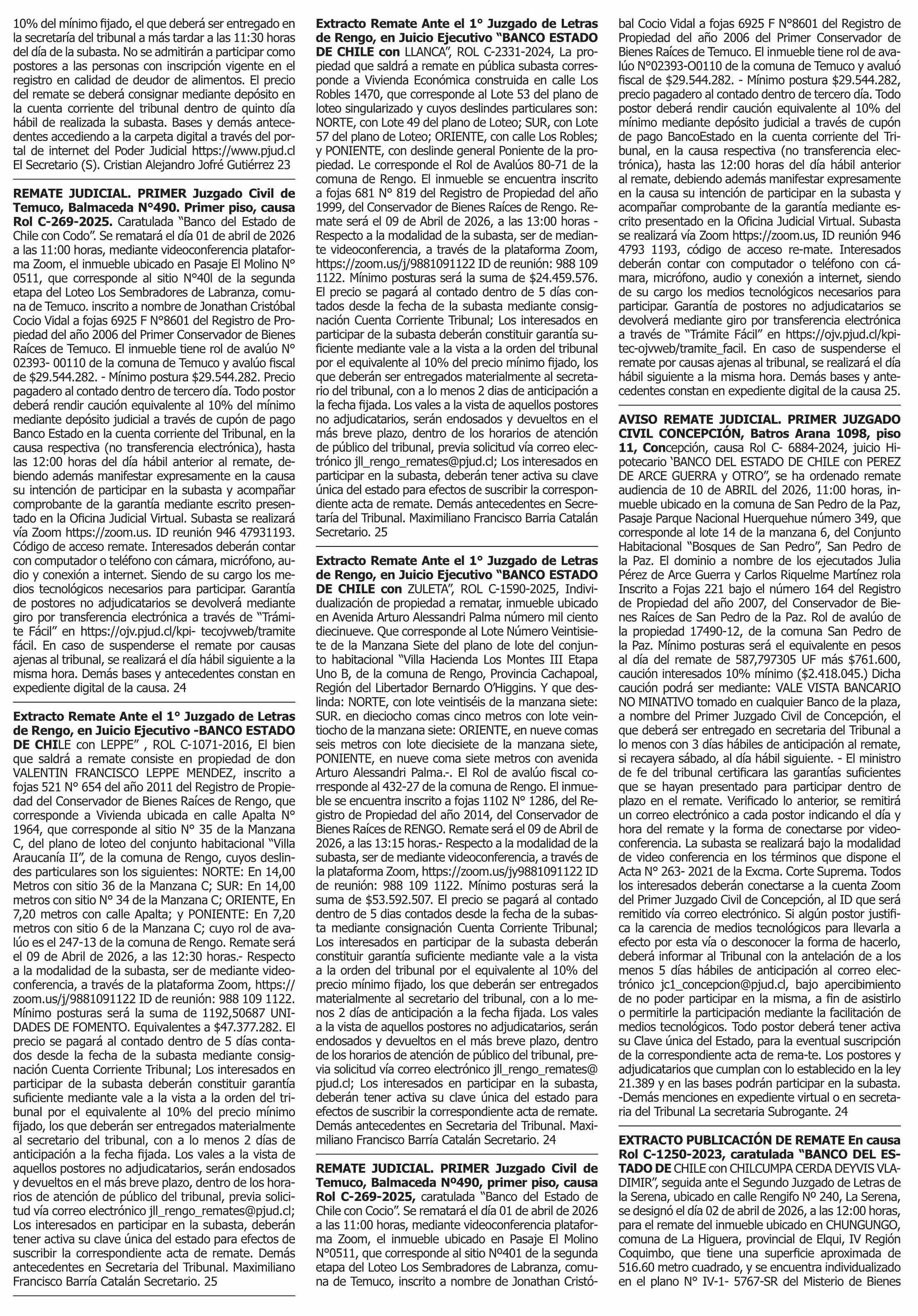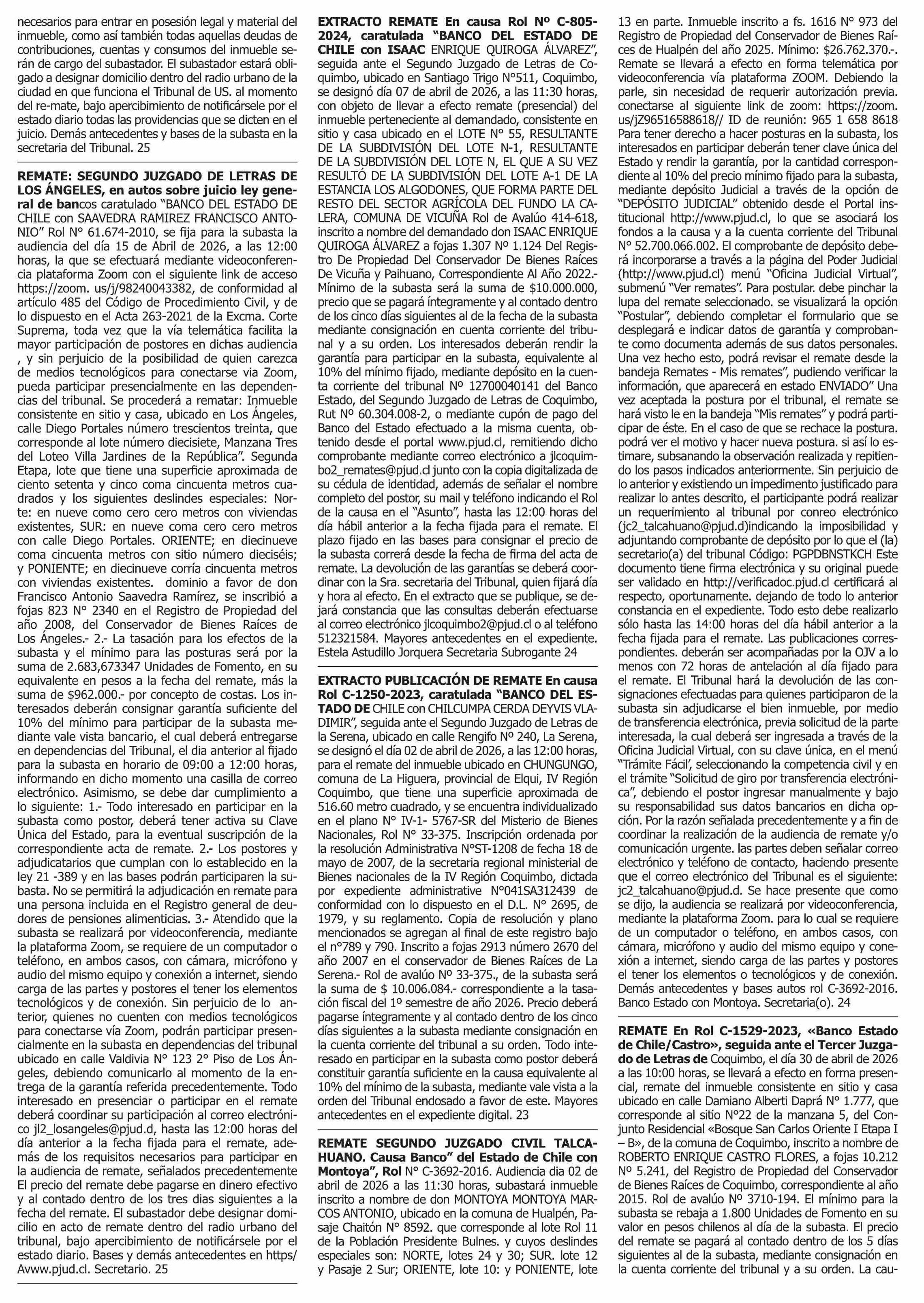 REMATES: COMPENDIO REMATES de PROPIEDADES (NACIONAL 23-03-2026 P&L Públicos y Legales |